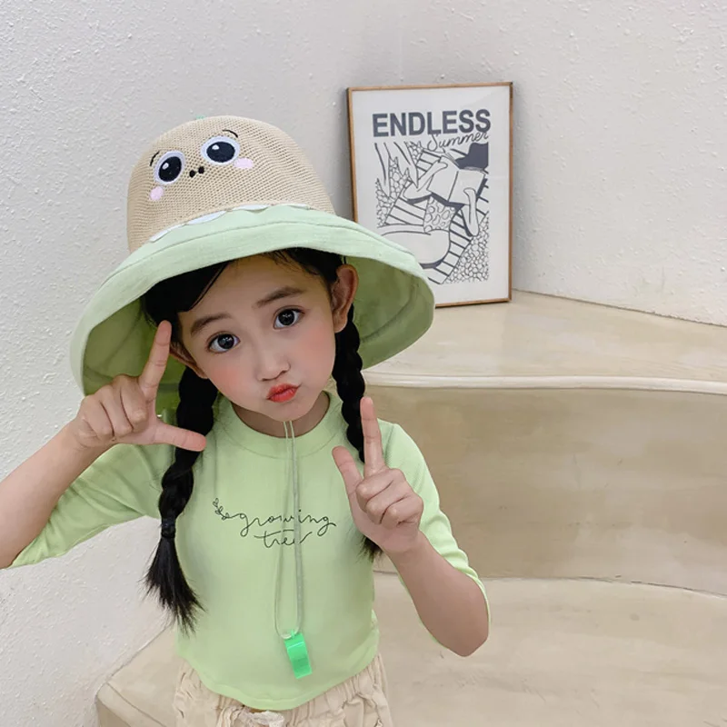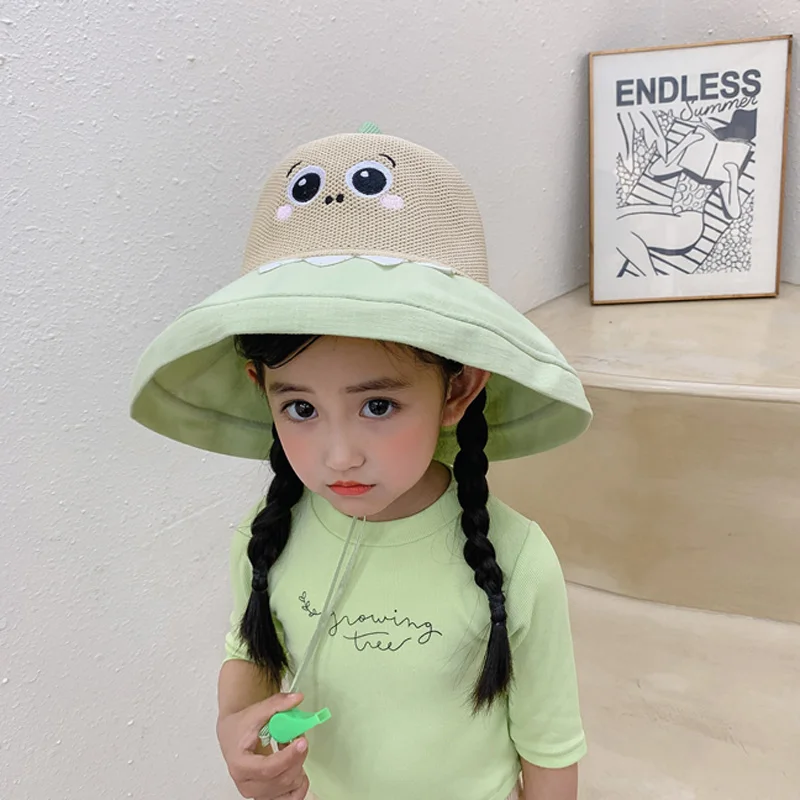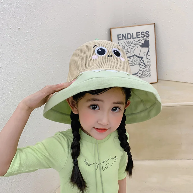 Doitbest Mesh Summer Girl Bucket Hats Cartoon Dinosaur foldable Kids sun protection Cap Child Boy Outdoor Beach Fisherman Hat
