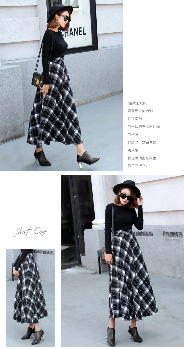Элегантные корейские женские юбки с высокой талией, новый осенне-зимний халат, Женская офисная одежда, шерстяные плиссированные юбки в клетку