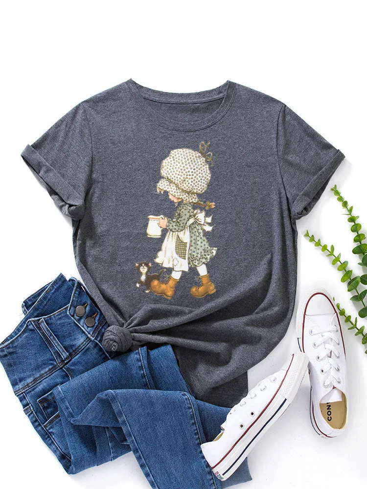 Футболка женская хлопковая с коротким рукавом и круглым вырезом |