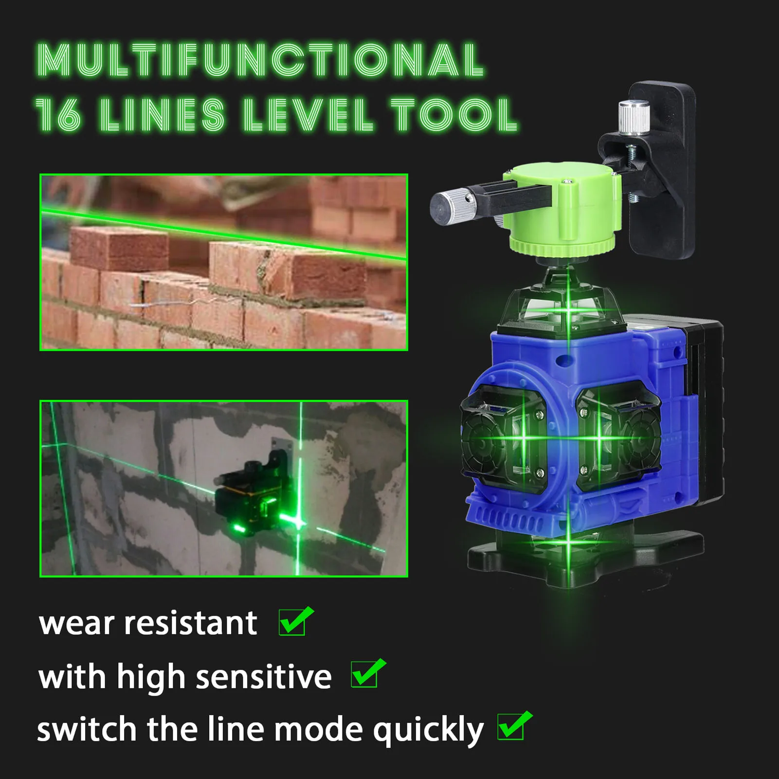 This is a kind of fine quality level instrument, 16 lines for finer positioning, with 3° self-leveling system, flexibility and stability. With vertical and horizontal laserlines, convenience to use. It is perfect for a variety of uses, including flooring, tile layout, paneling, wallpapering, stenciling, wainscoting, finish carpentry, socket and switch layout, wall stud layout and partition installation. You can have a try.