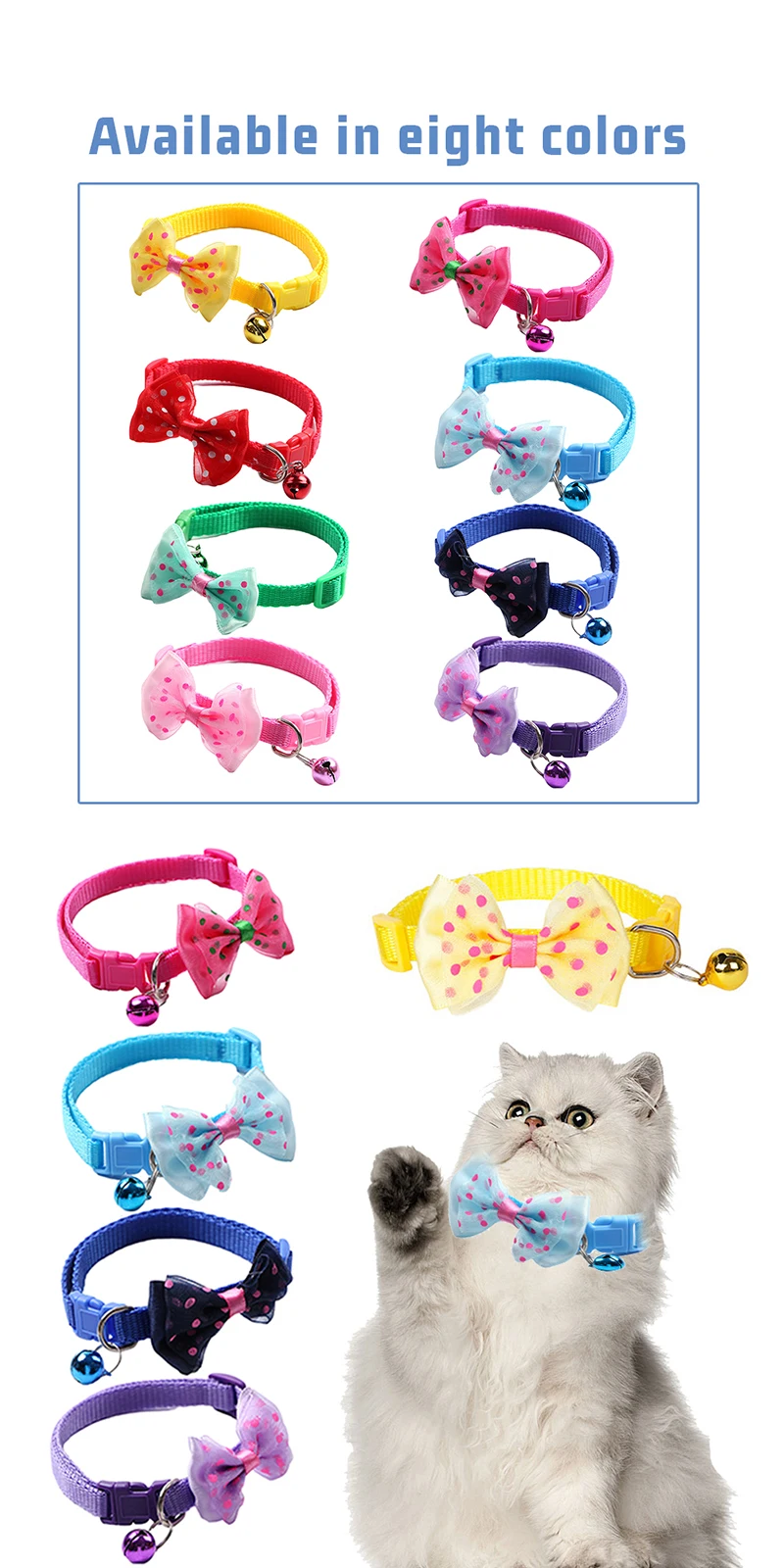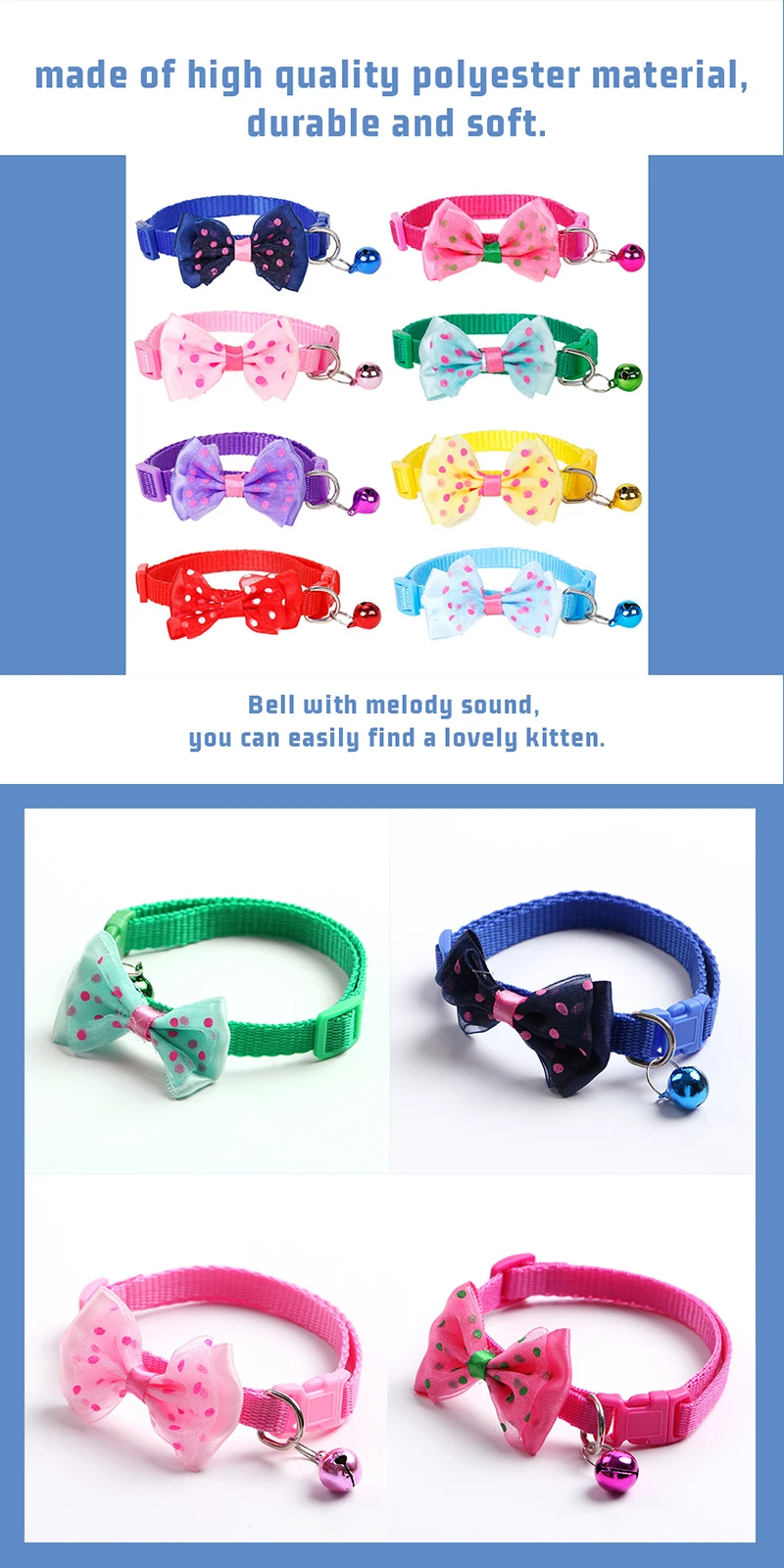 2. Воротник с бантом и колокольчиком: колокольчик со звуком мелодии, вы можете легко найти милого котенка