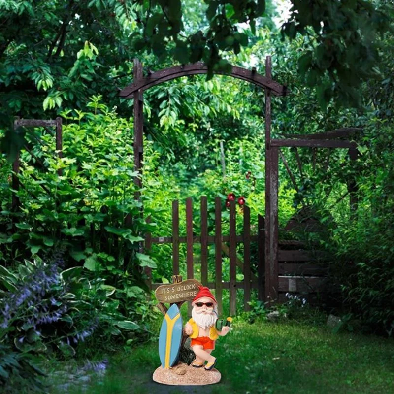 Акция! Забавные фигурки гнома из смолы с доской для серфинга Добро Пожаловать Знак это 5 часов где-то статуя для дома сада двора декорати