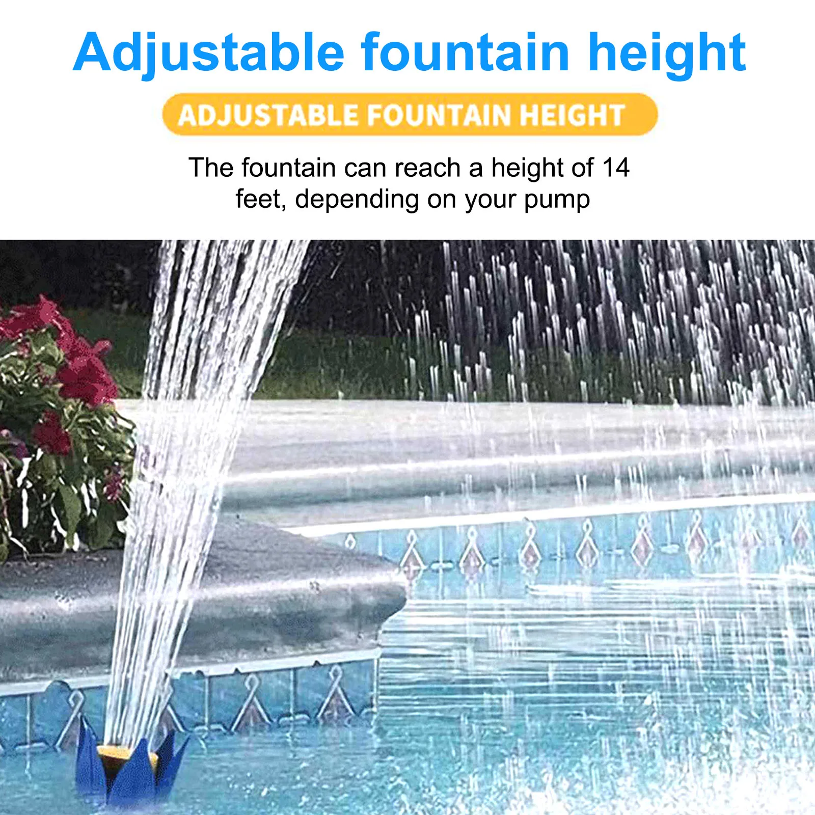 Регулируемая гибкость-легко устанавливать и снимать. Распыляет до высоты 14 ' /5 м (зависит от насоса; Требуется минимум 3/4 л.с.). Спрей для фонтана с водопадом регулируется в направлении. Вы можете отрегулировать в соответствии с реальной ситуацией. Также может работать без насоса.