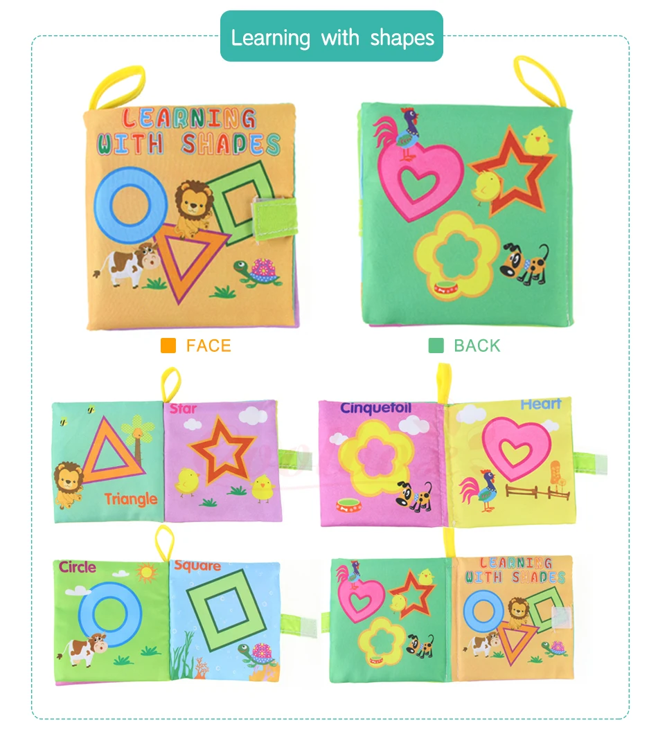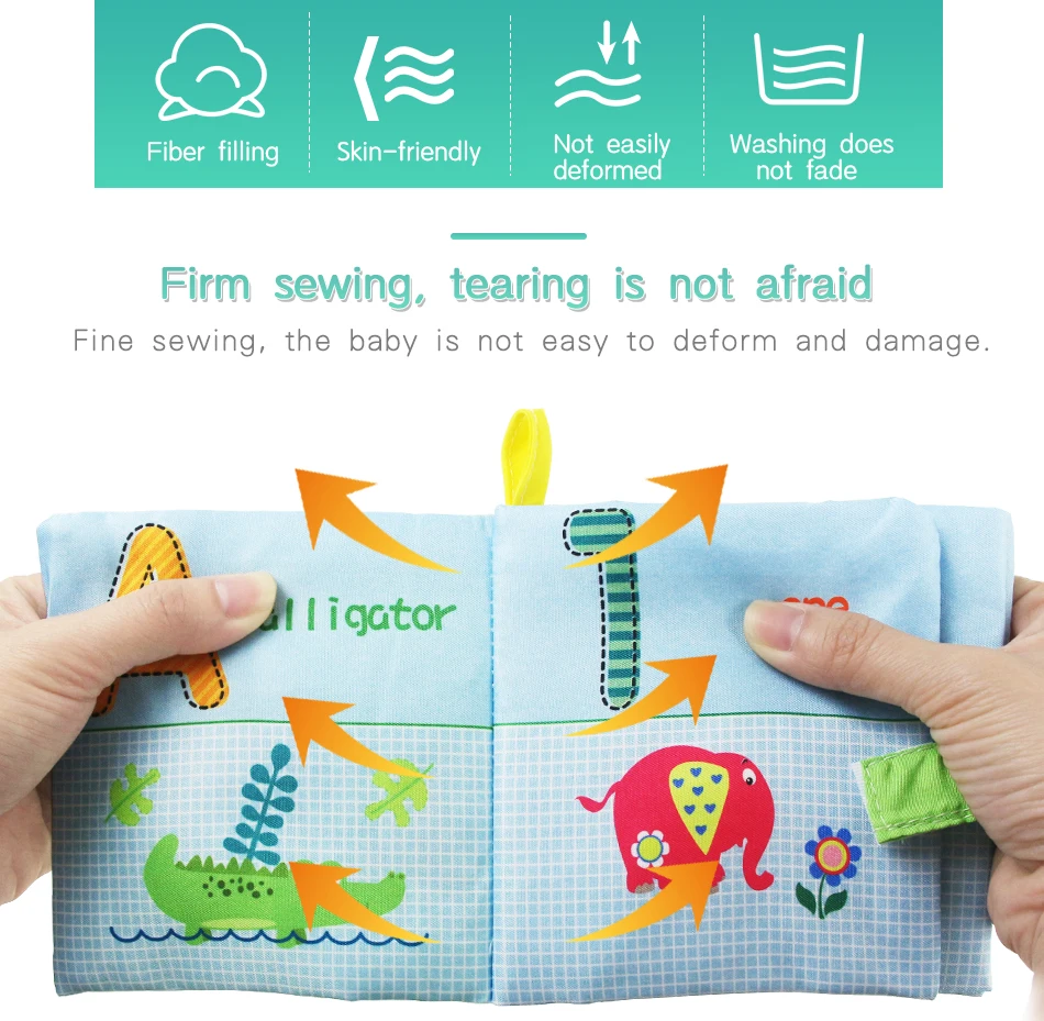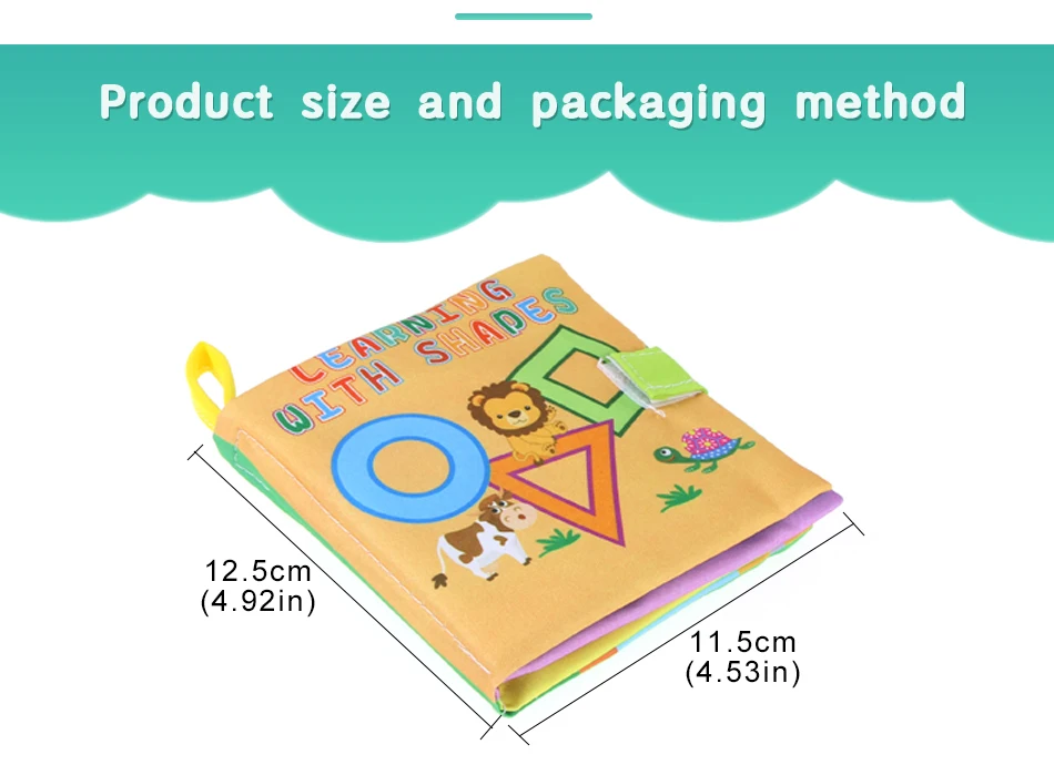 Made of compact and soft material, it's comfortable to touch, colorful and cute, perfect for your baby's first cloth book.