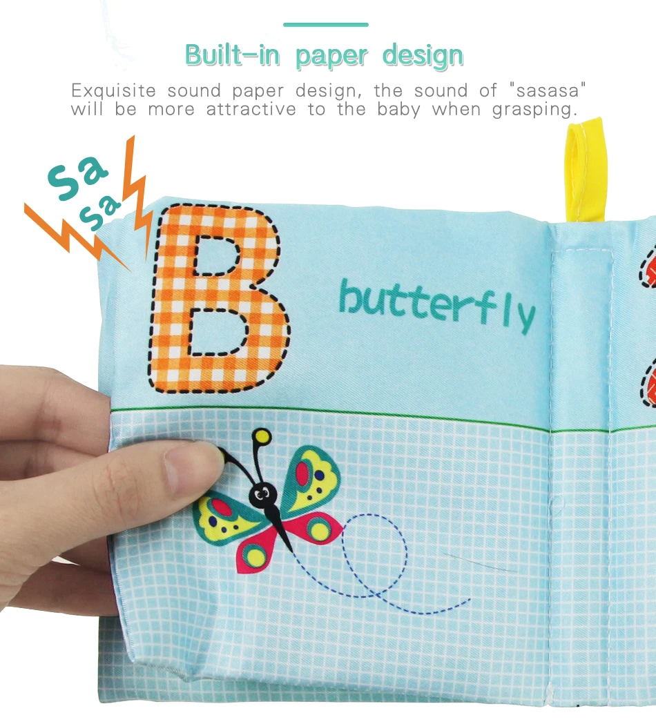 Built-in Sound Paper Design: it is durable and not easy to be deformed.The top and bottom covers of the book have been added with a sound paper design, it can make sound of "rustling" , more attractive to babies.