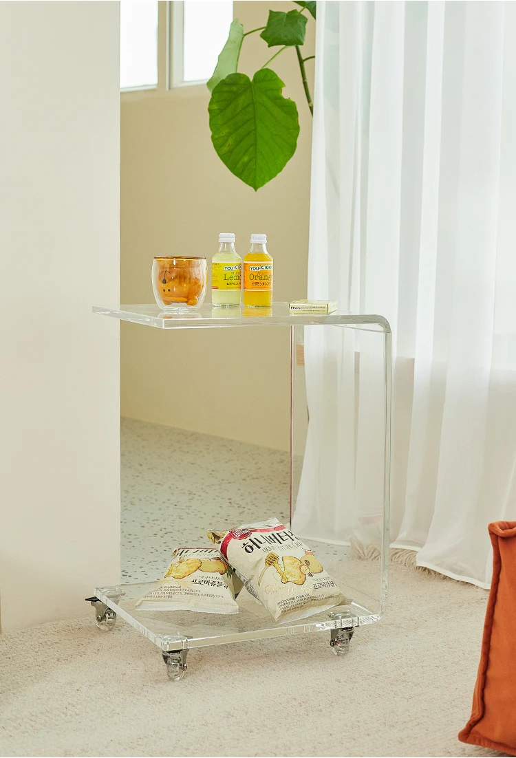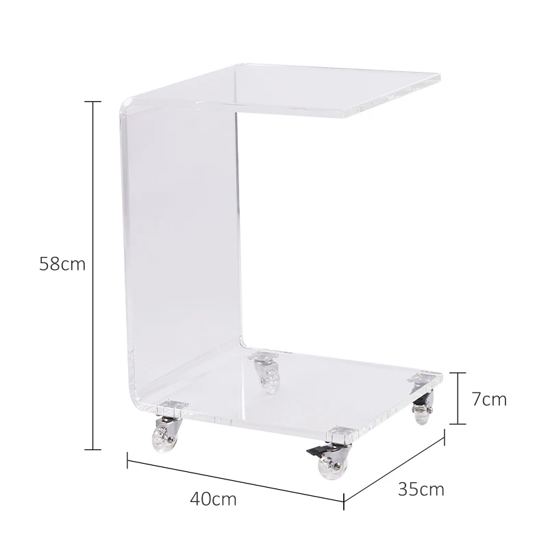 Уникальная форма, акриловая пластина согнута для формирования двух слоев пространства для хранения, который может использоваться в качестве дивана бокового стола, прикроватного стола, обеденного автомобиля и т. Д., гибкий и практичный