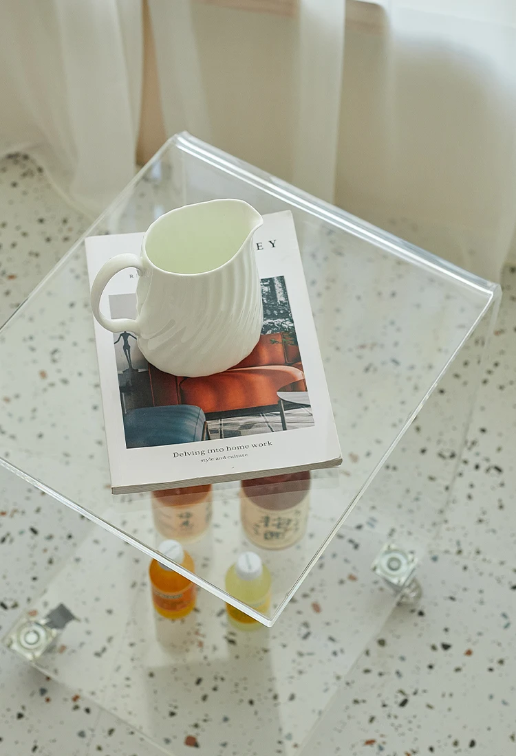 Не только внешний вид, все тело принимает прозрачный акриловый материал. Благодаря прозрачным характеристикам материала, он в определенной степени уменьшает чувство ограничений пространства и увеличивает легкость атмосферы. Он простой и легкий и может быть помещен в пустые углы