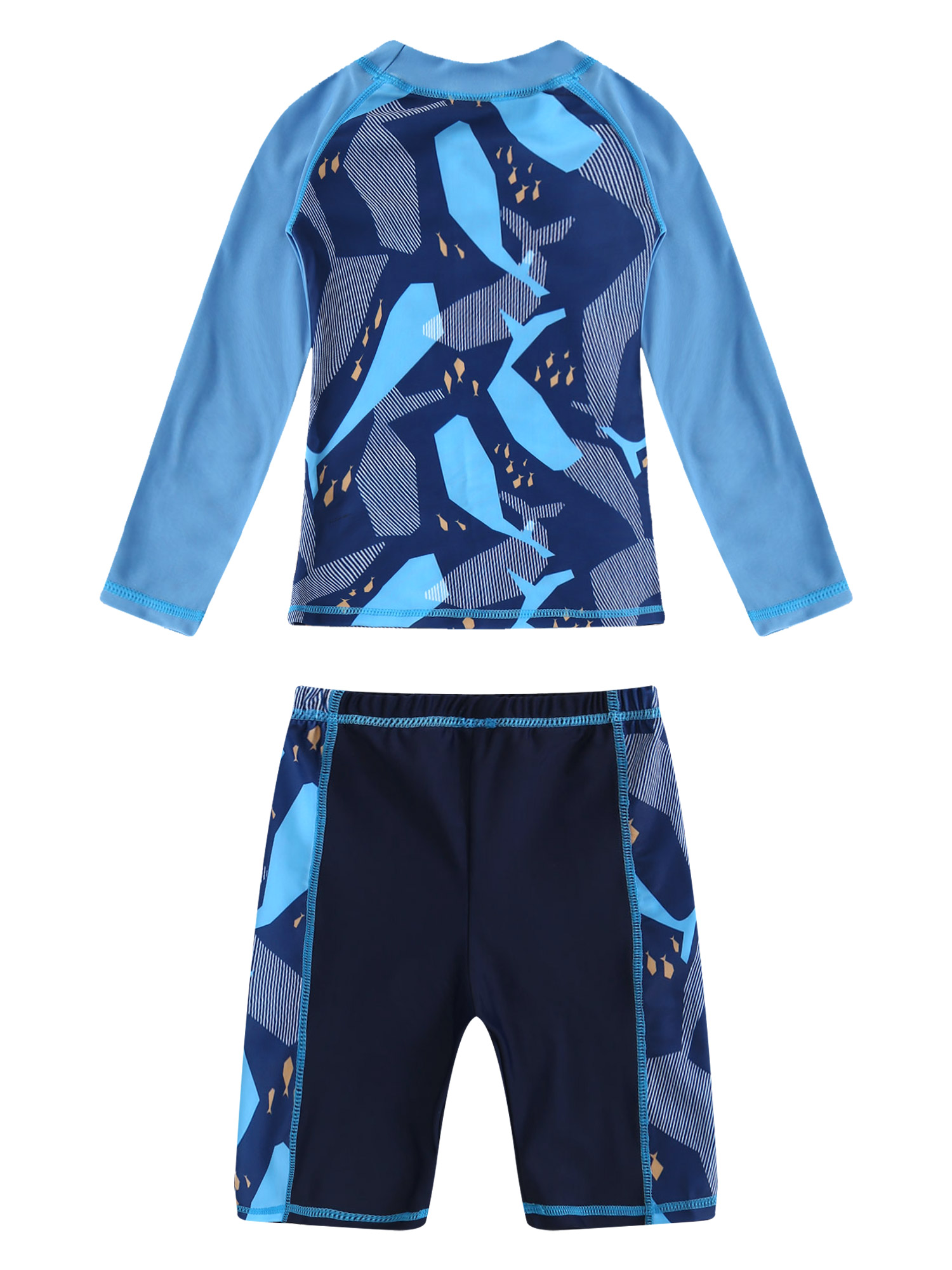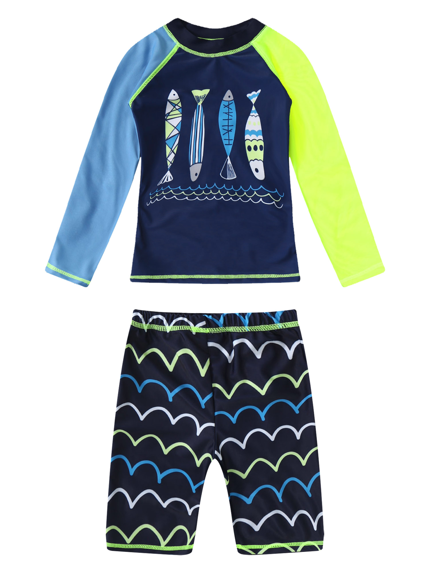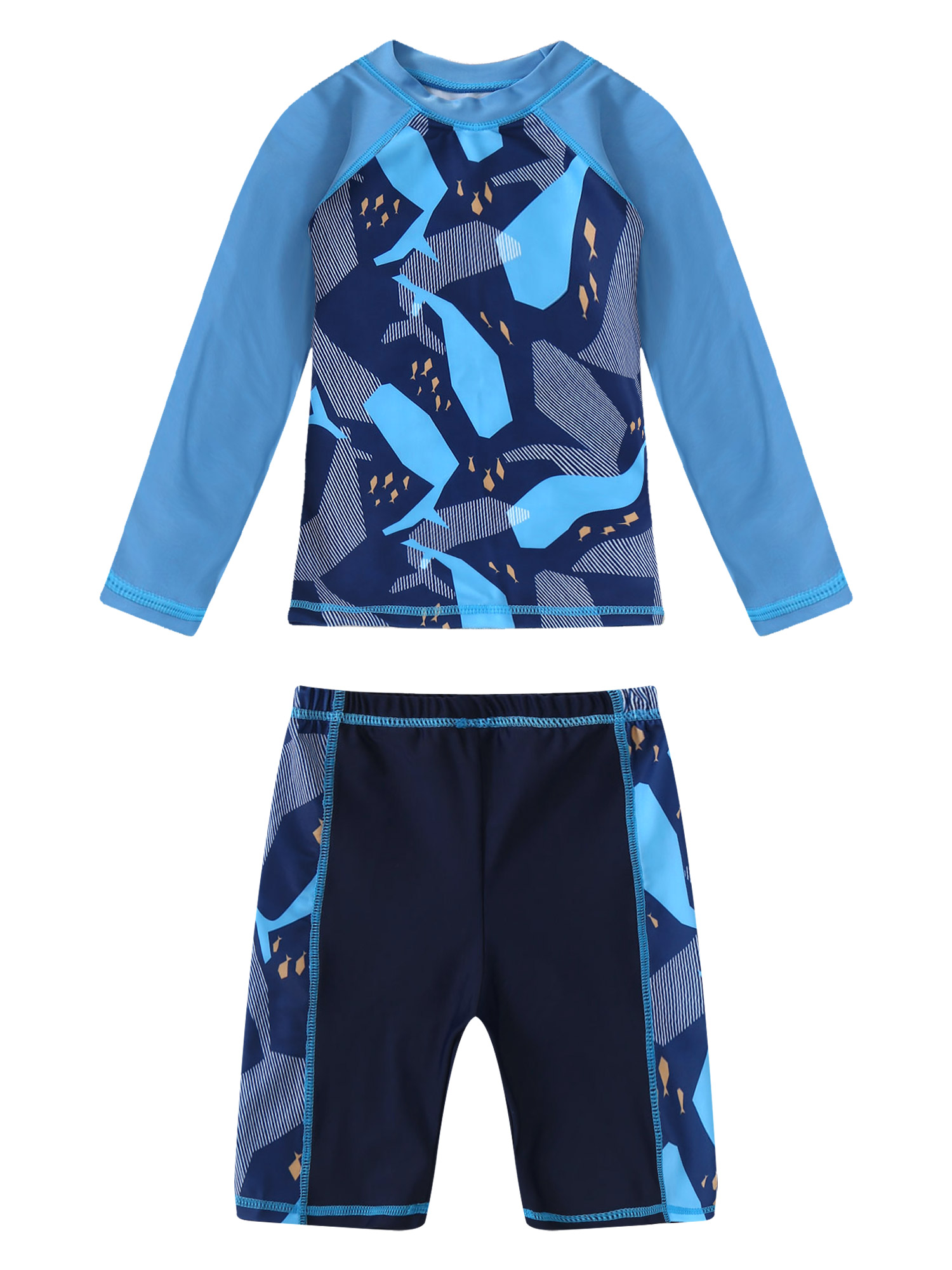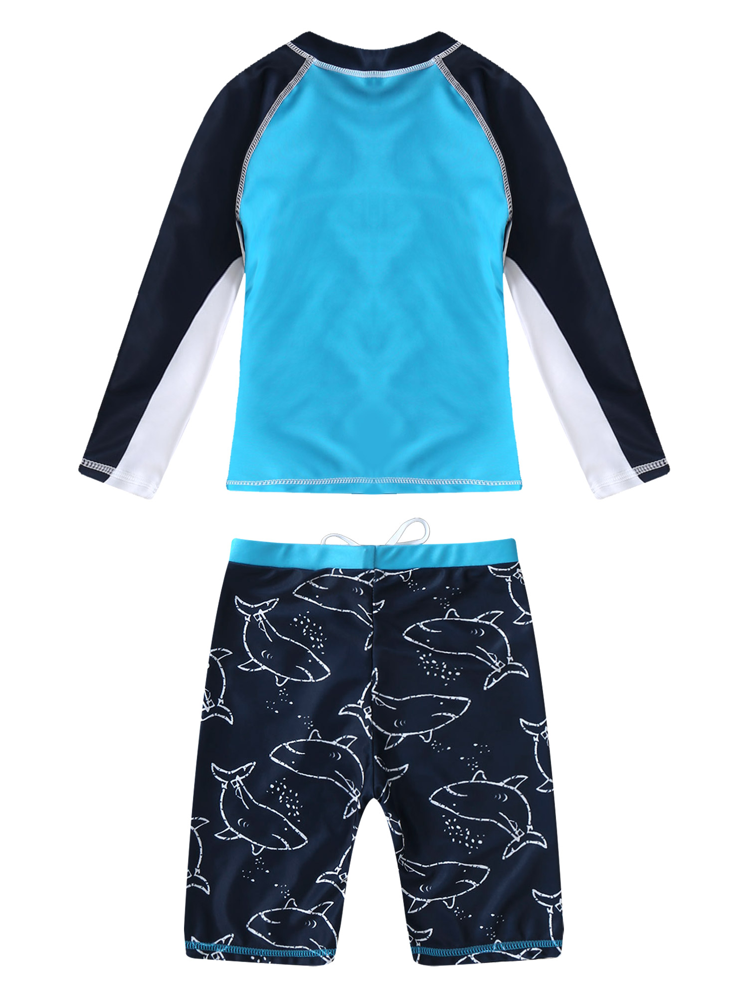 Детский комплект из 2 предметов для мальчиков, топ с круглым вырезом и длинными рукавами с рисунком акулы и рыбы и шорты, комплект для купания.