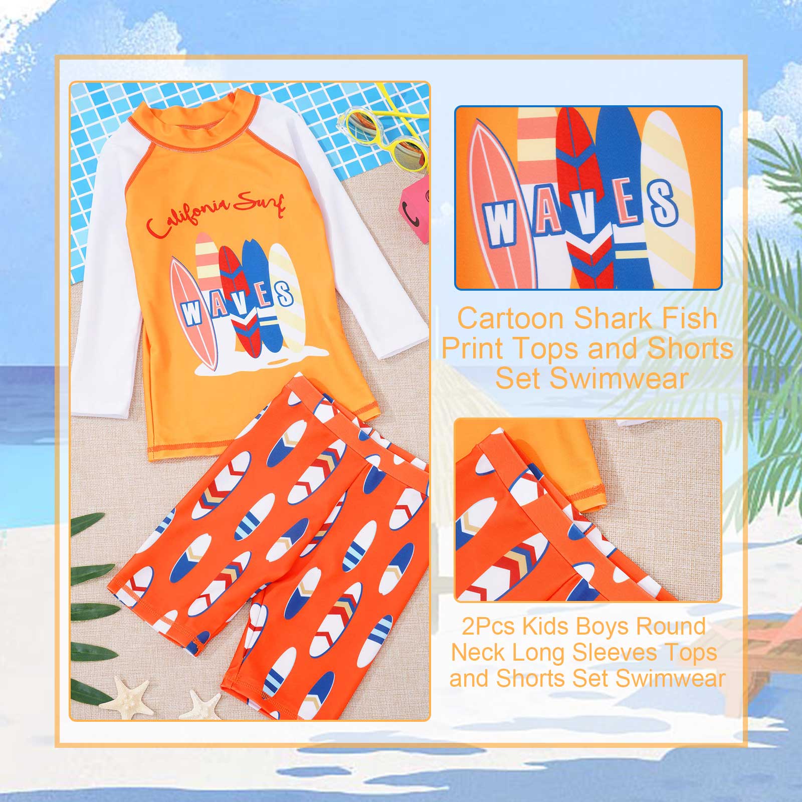 Длинные рукава Предотвращают появление солнечных ожогов на нежной коже детей, включая руки, Мультяшные акулы и рыбки, делают мальчиков очень живыми.