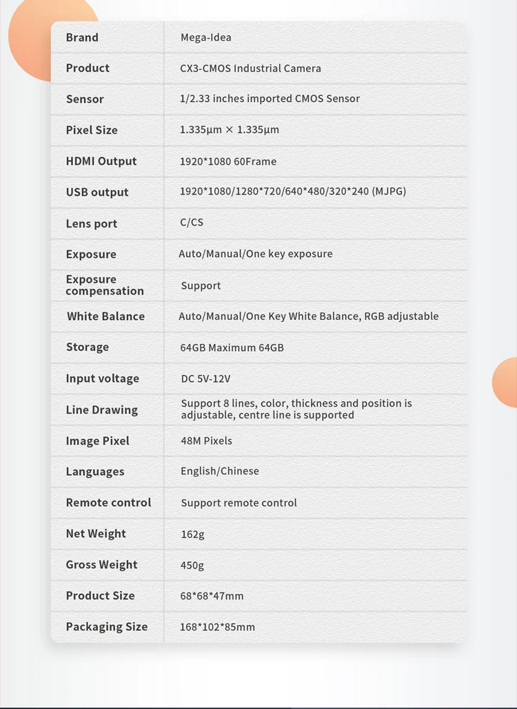 Промышленная камера Qianli MEGA IDEA CX3 CMOS