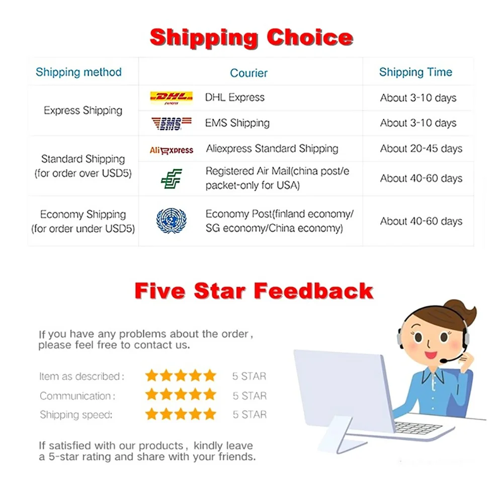 ★Если вы выбираете стандартную логистику, время доставки составляет около 15 ~ 35 дней в зависимости от расстояния от Китая. Номер отслеживания можно проверить через веб-сайт логистики для отслеживания логистики.