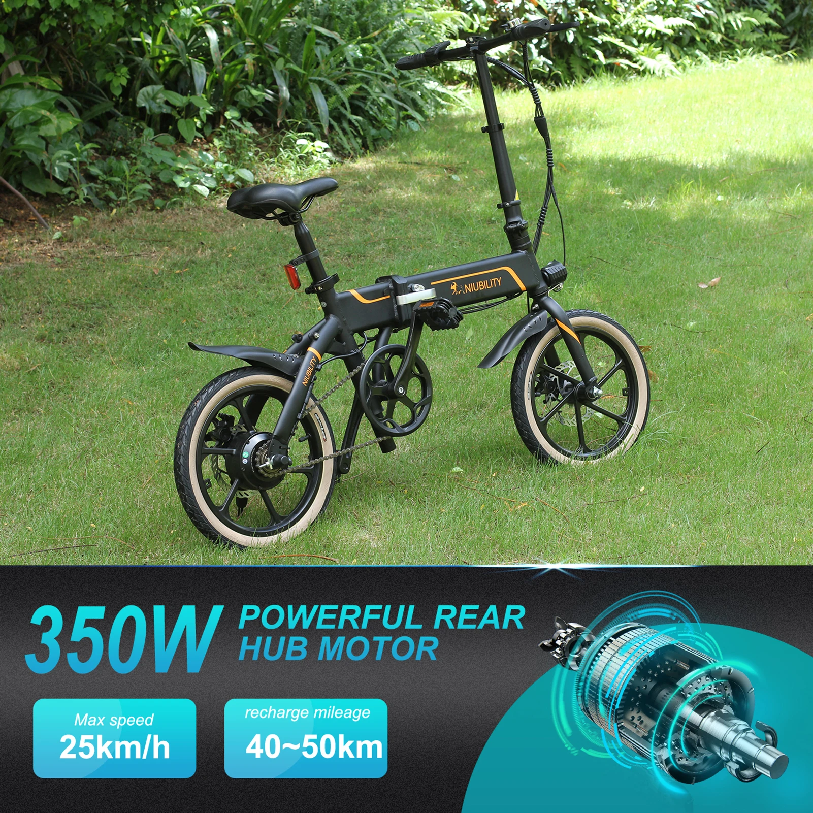 Niubility B16 Электрический Скутер имеет 350 Вт бесщеточный мотор и 10.4AH литиевая батарея, которая позволяет вам ездить на максимальной скорости 25 км/ч и путешествовать на 40-50 км в режиме помощи электроэнергии. Велосипед Складной Компактный для удобного хранения и транспортировки. Отлично подходит для путешествий, поездок на выходные и покупок.