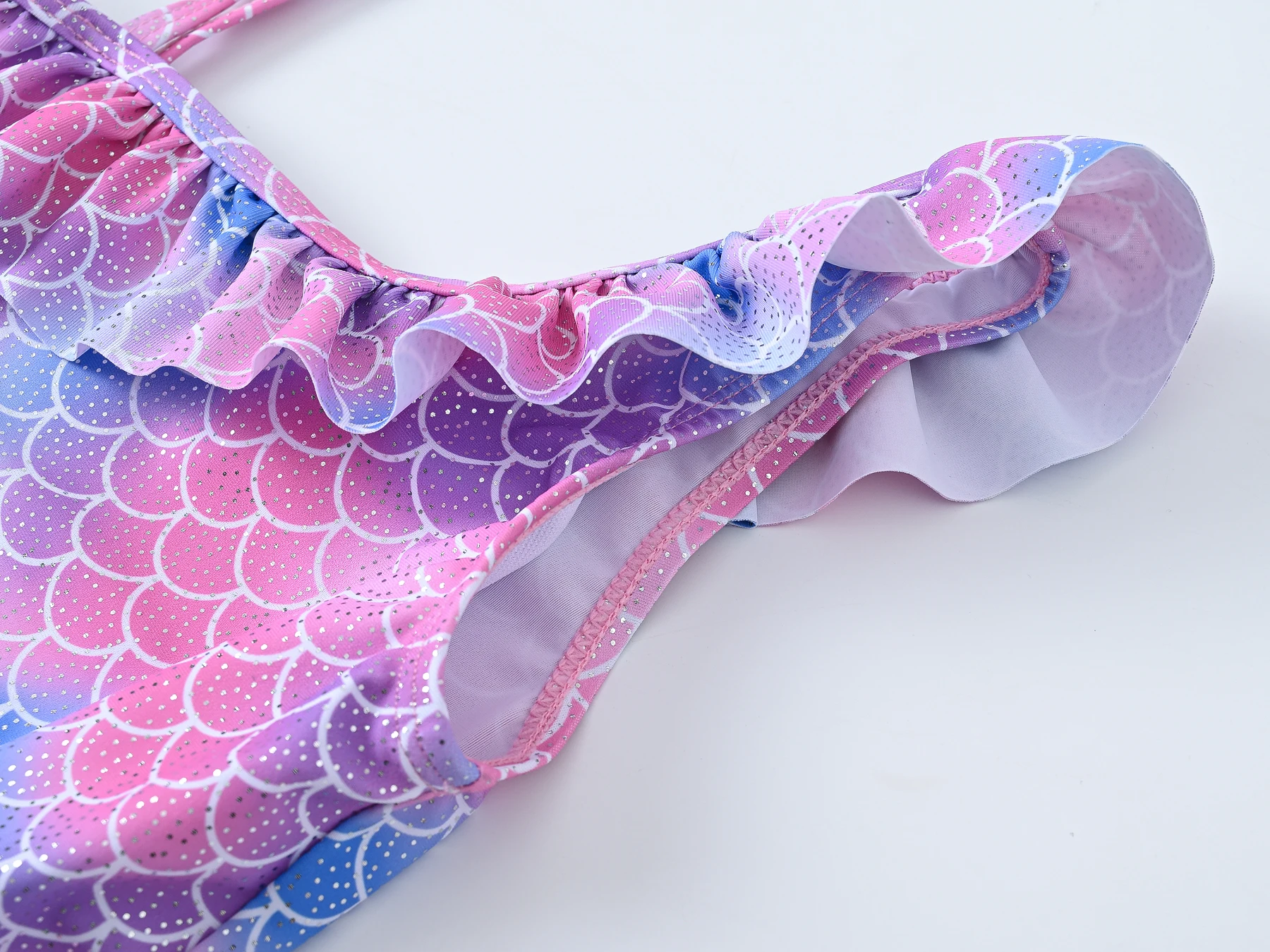 Летняя пляжная одежда для девочек; Детский купальный костюм с рисунком рыбьей чешуи