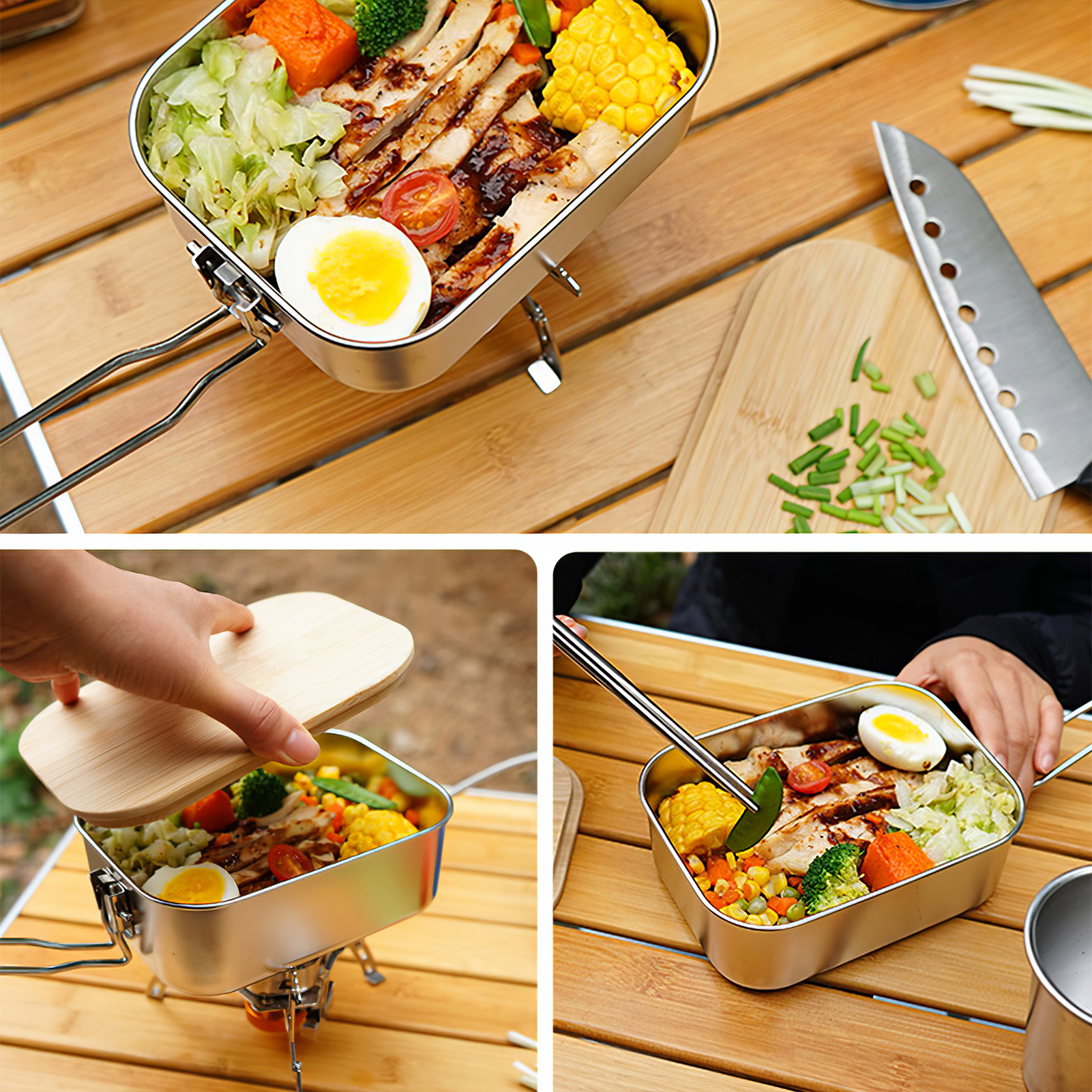 5. Ланч-бокс имеет удобную рукоятку для портативности и подходит для кемпинга на открытом воздухе, пикников, барбекю и т. д.