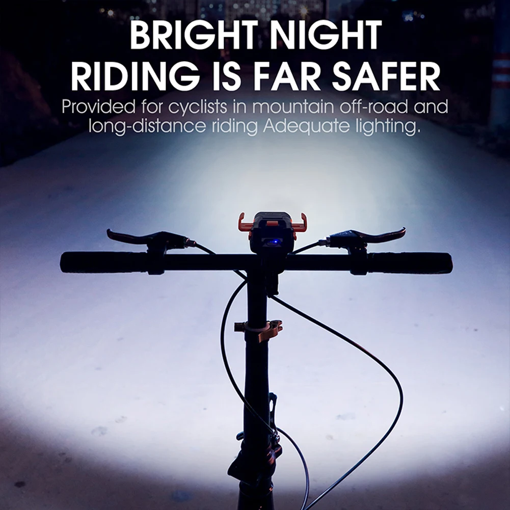 5 в 1 Многофункциональный дизайн, он состоит из переднего света велосипеда, рогов, держателя мобильного телефона, перезарядки pal, и Согревающий Свет.