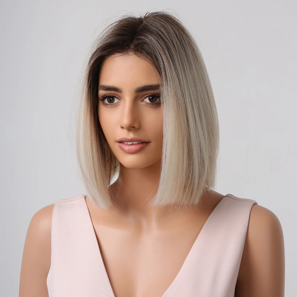 Парики из синтетических волос Луи Ферре, короткий блонд Боб, с темным корнем, длина плеча, блонд, прямой парик, смешанные белые волосы, высокая температура