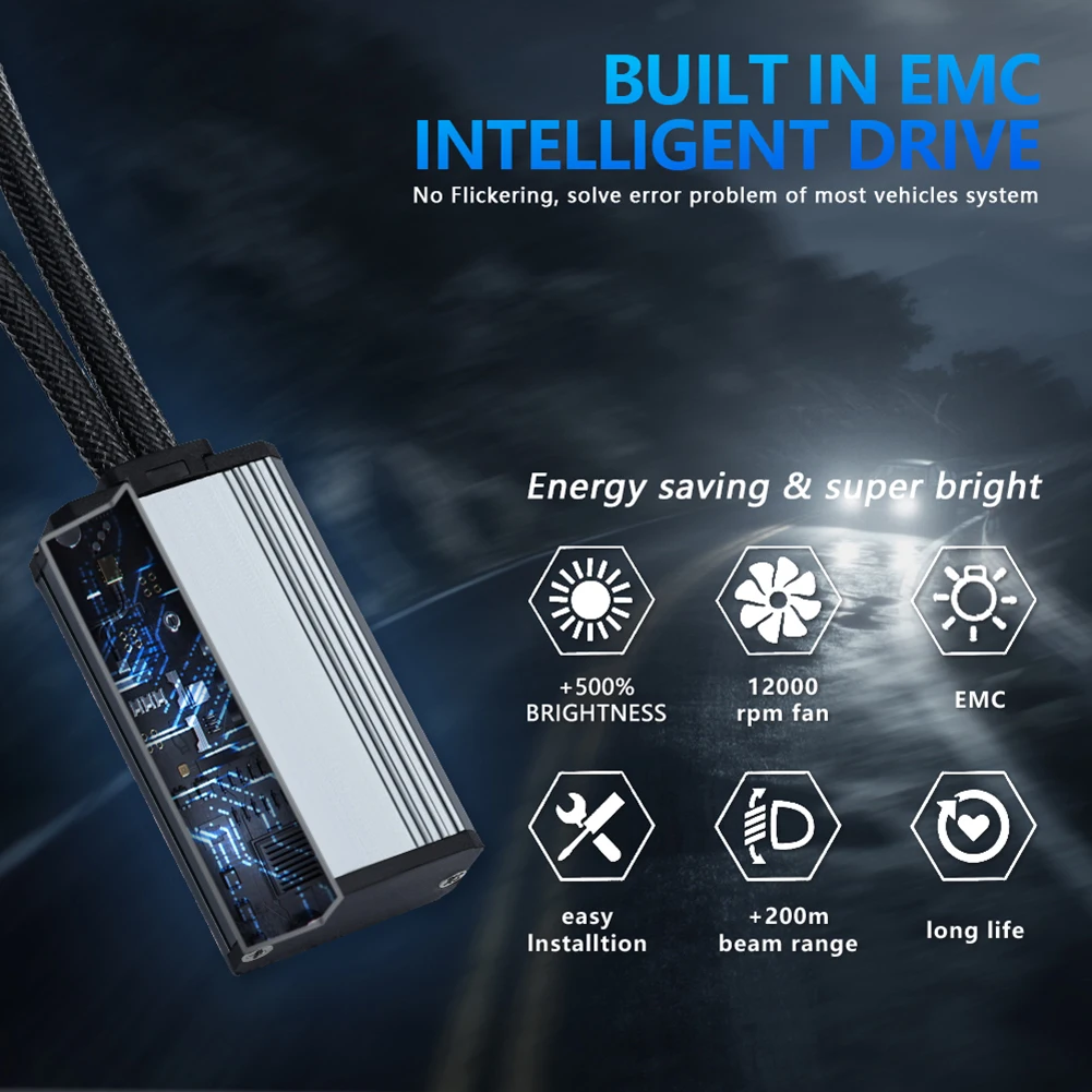 * 4. Схема привода использует интеллектуальный модуль контроля температуры постоянного тока (интеллектуальное управление током, максимизирует светодиодный эффект, защищает свет и повышает безопасность вождения).