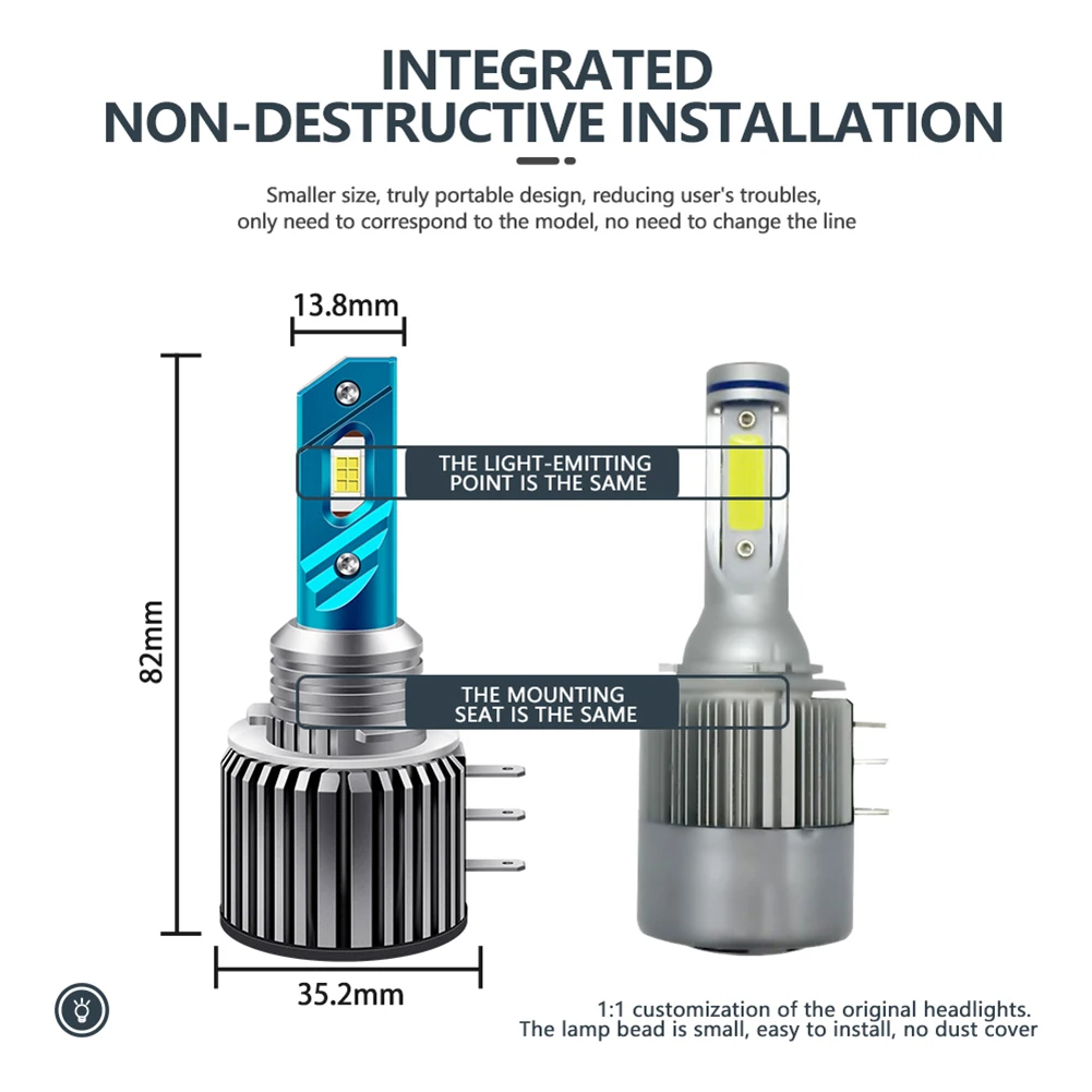 * 4. Схема привода использует интеллектуальный модуль контроля температуры постоянного тока (интеллектуальное управление током, максимизирует светодиодный эффект, защищает свет и повышает безопасность вождения).