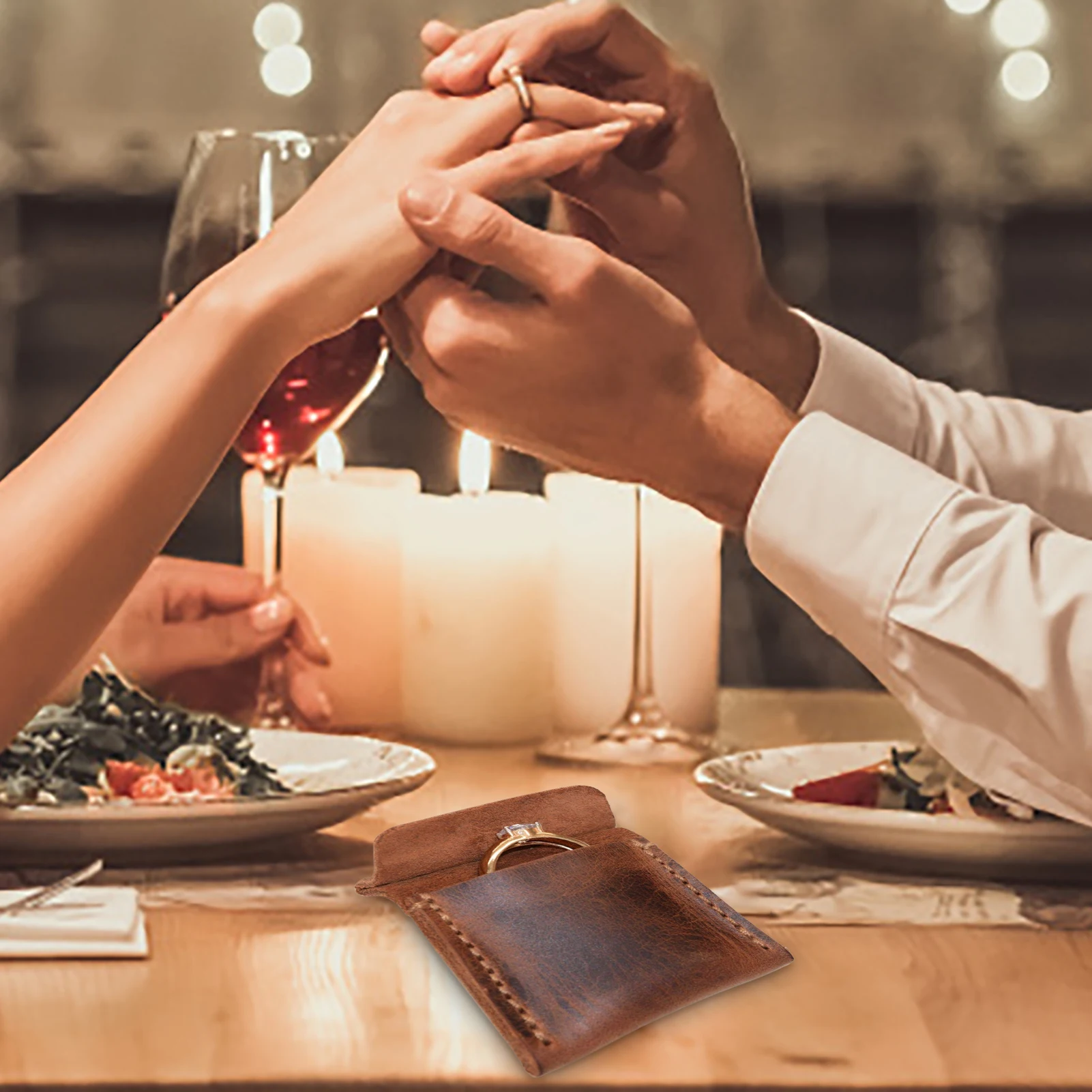 Кожаный чехол для колец защищает все ваши ценные вещи, такие как обручальные кольца, свадебные ленты и т. д., позволяя вам держать их рядом с вами. Он оснащен ремешком на спине с прочной застежкой-защелкой, чтобы вы могли прикрепить его к поясу, ремню для кошелька или бюстгальтеру.