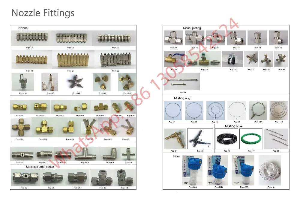 Насадки для контроля влажности на рынках пиломатериалов, целлюлозы и бумаги и теплиц, теплоизоляция для животных, птицы и людей в теплых климатических зонах, контроль запаха на местах отходов, турбинная запотевание для увеличения энергопотребления, противопожарные системы, охлаждение животных, фермы, подавление пыли, контроль запаха, теплица, микромистинг, Наружное охлаждение, увлажнение и т. д.
