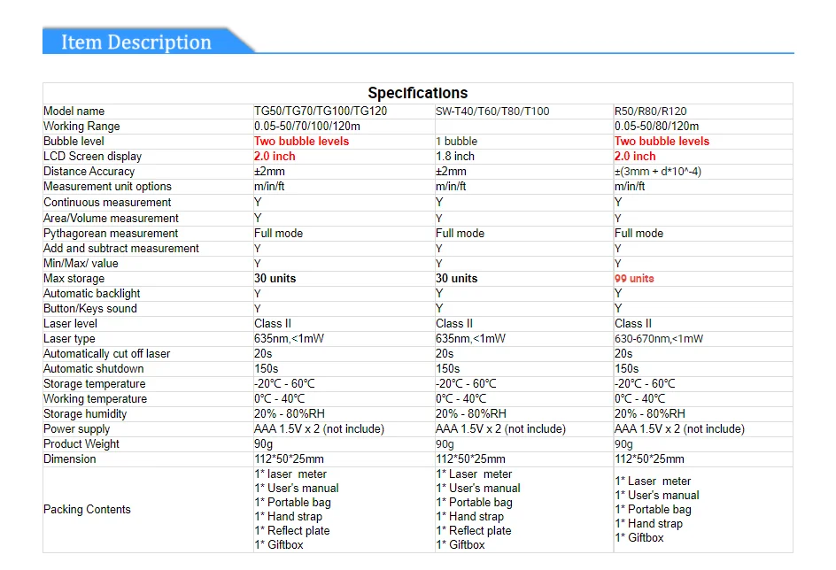 SNDWAY SW-T100/SW-T80/SW-T60/SW-T40/SW-G4S Digital Laser rangefinder distance meter Area Volume measure