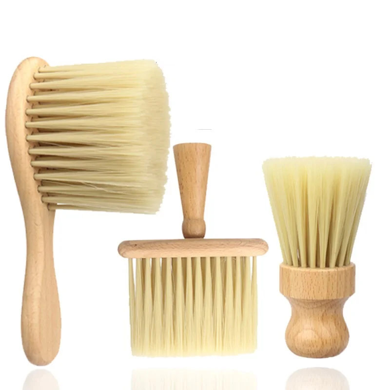 Wooden Brush Comb Neck Face Duster Barber Hair Sweeping Cutting Styling Tools