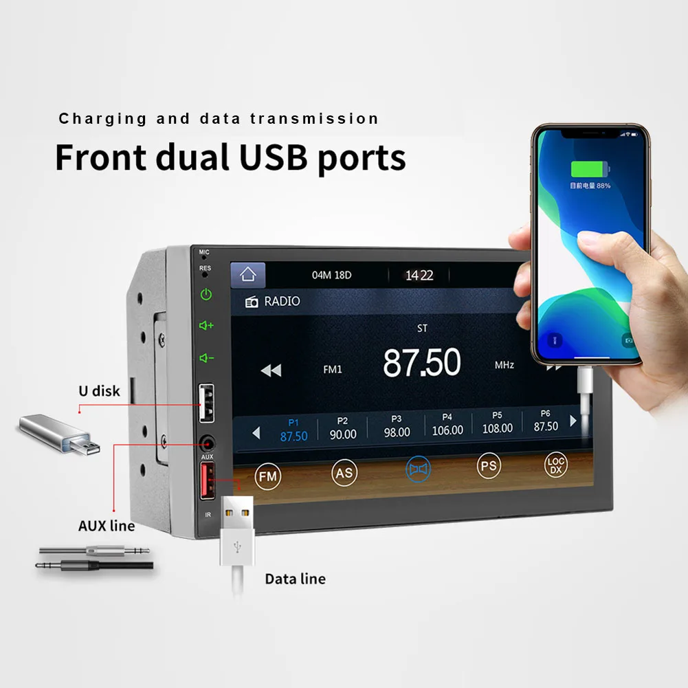 * 1. Двойной Din автомобильный стерео MP5 плеер.