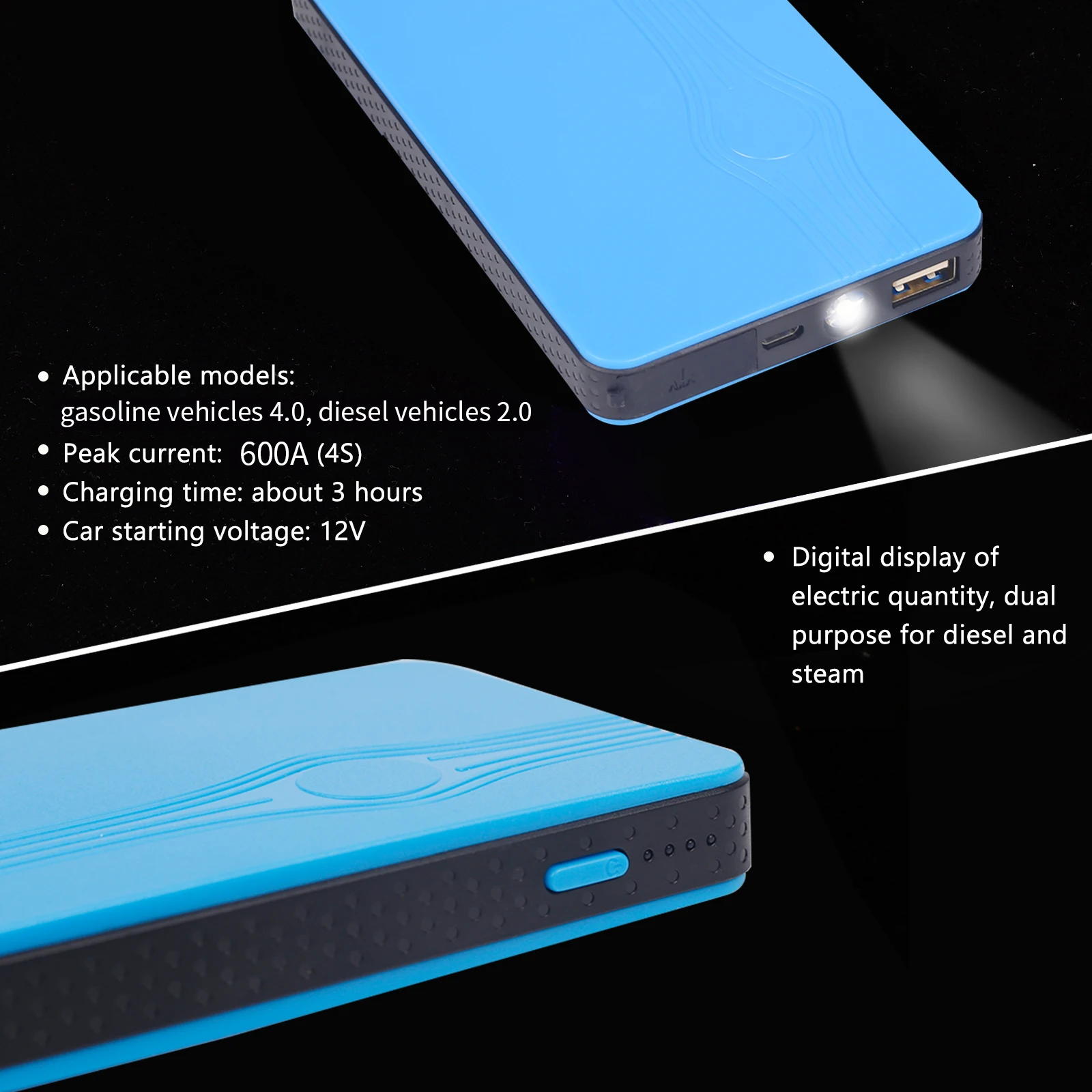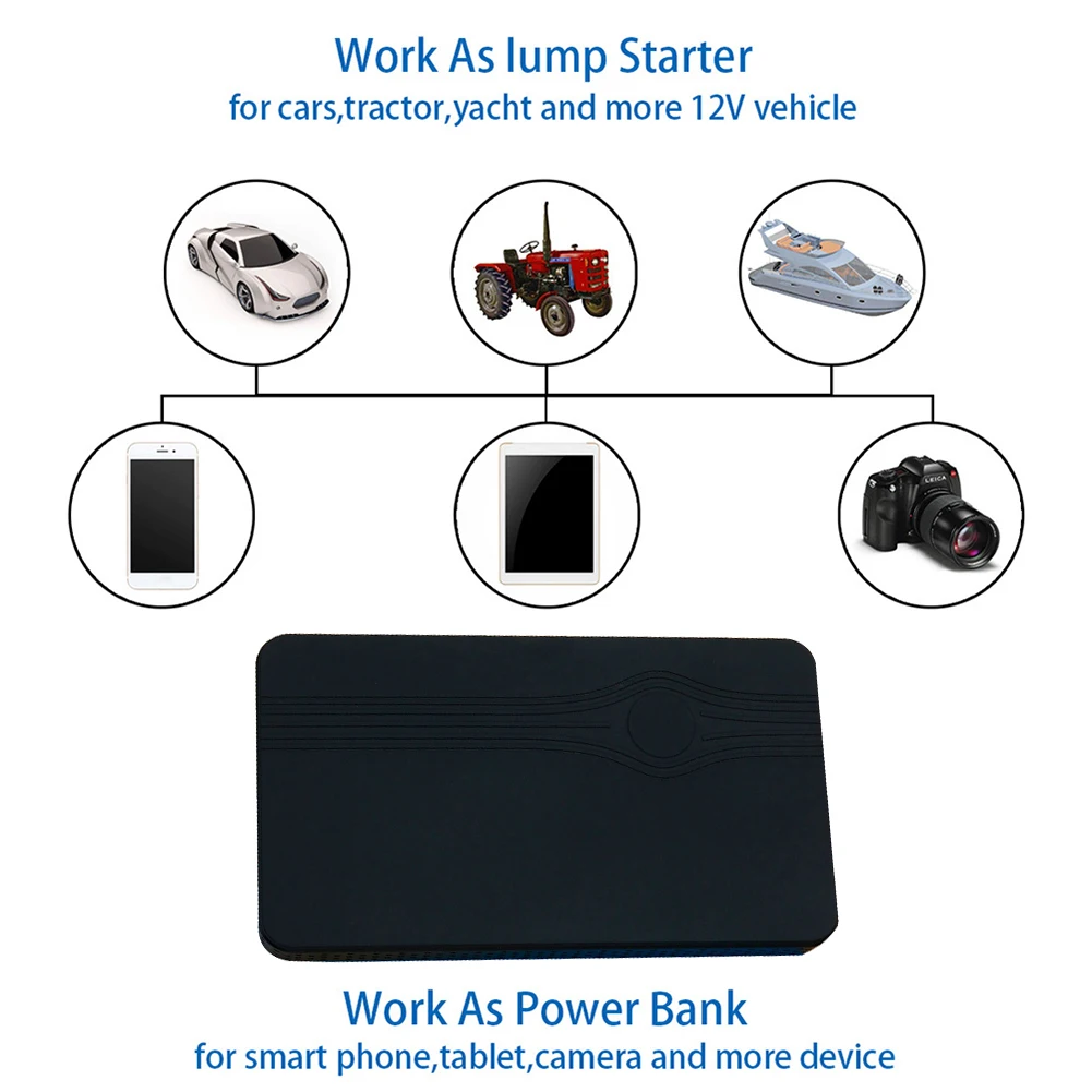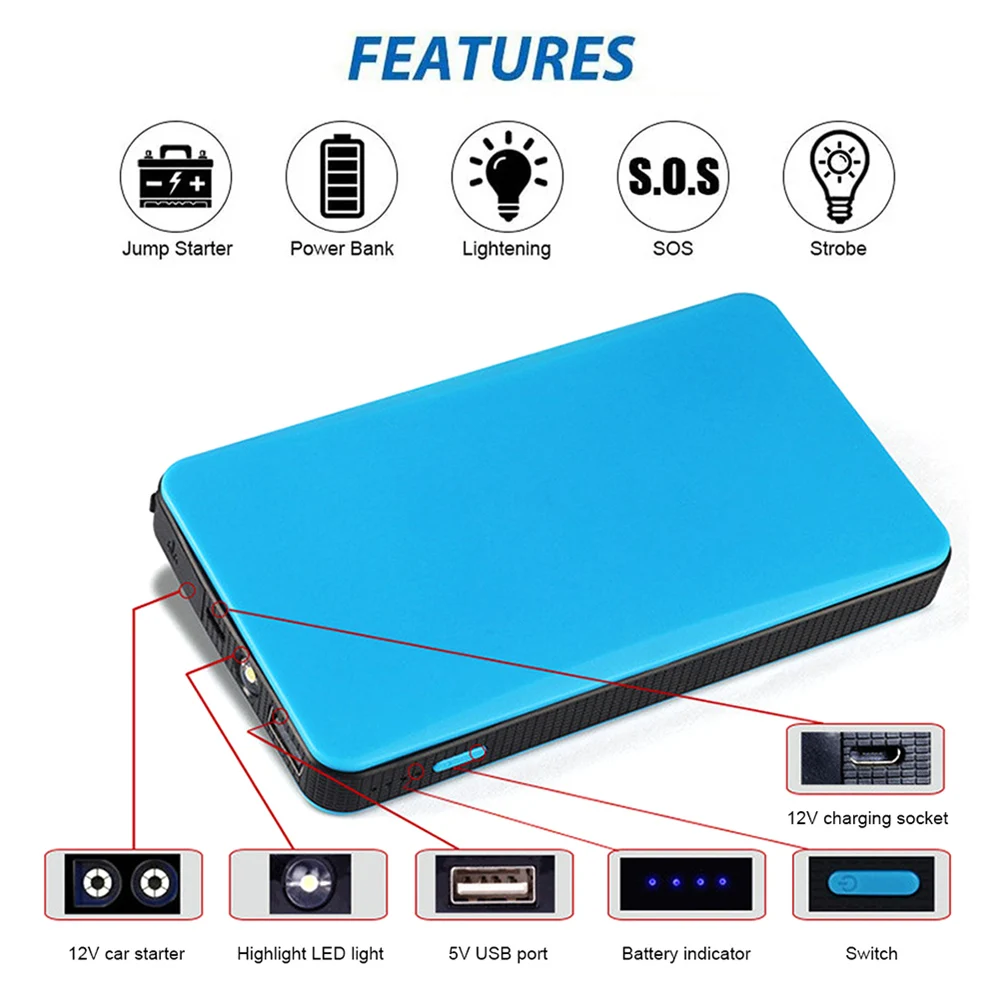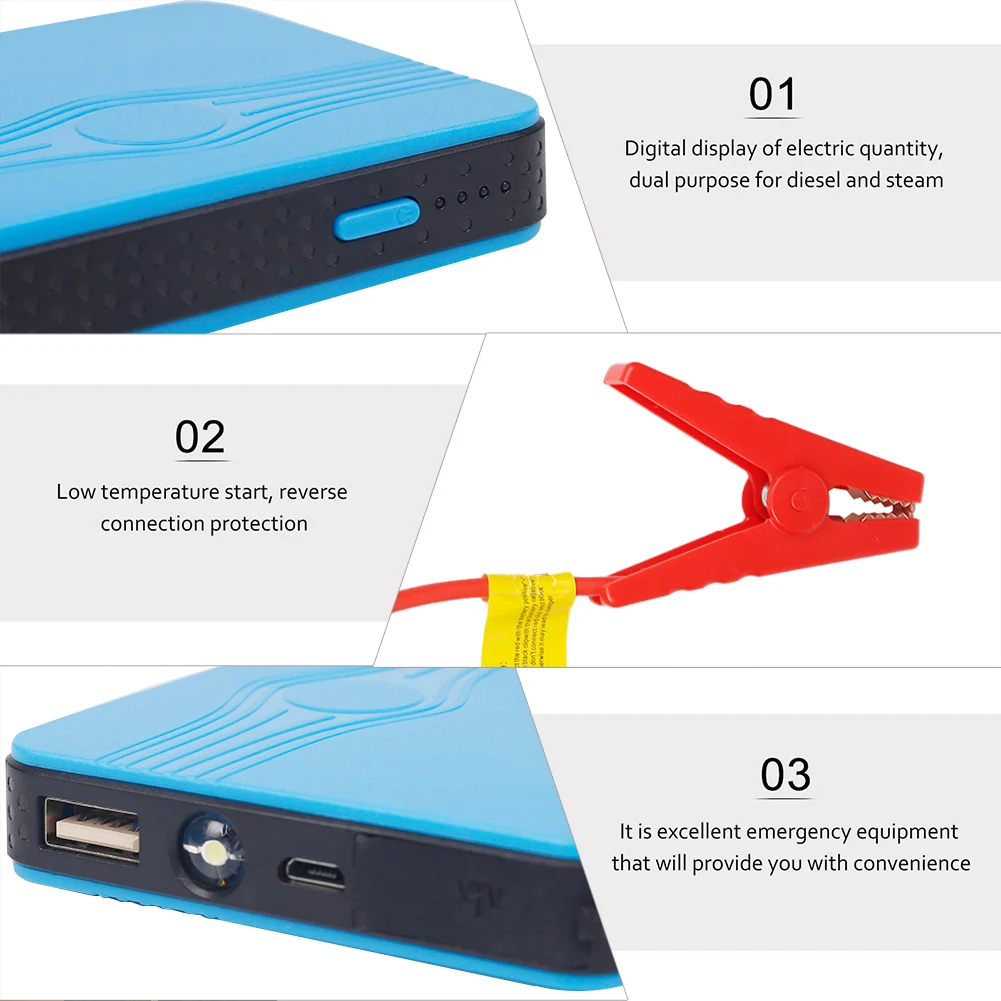 * 3. Многофункциональный автомобильный аккумулятор jumper starter объединяет фонарик, выход USB power pack (5 В/2 А, 12 В).