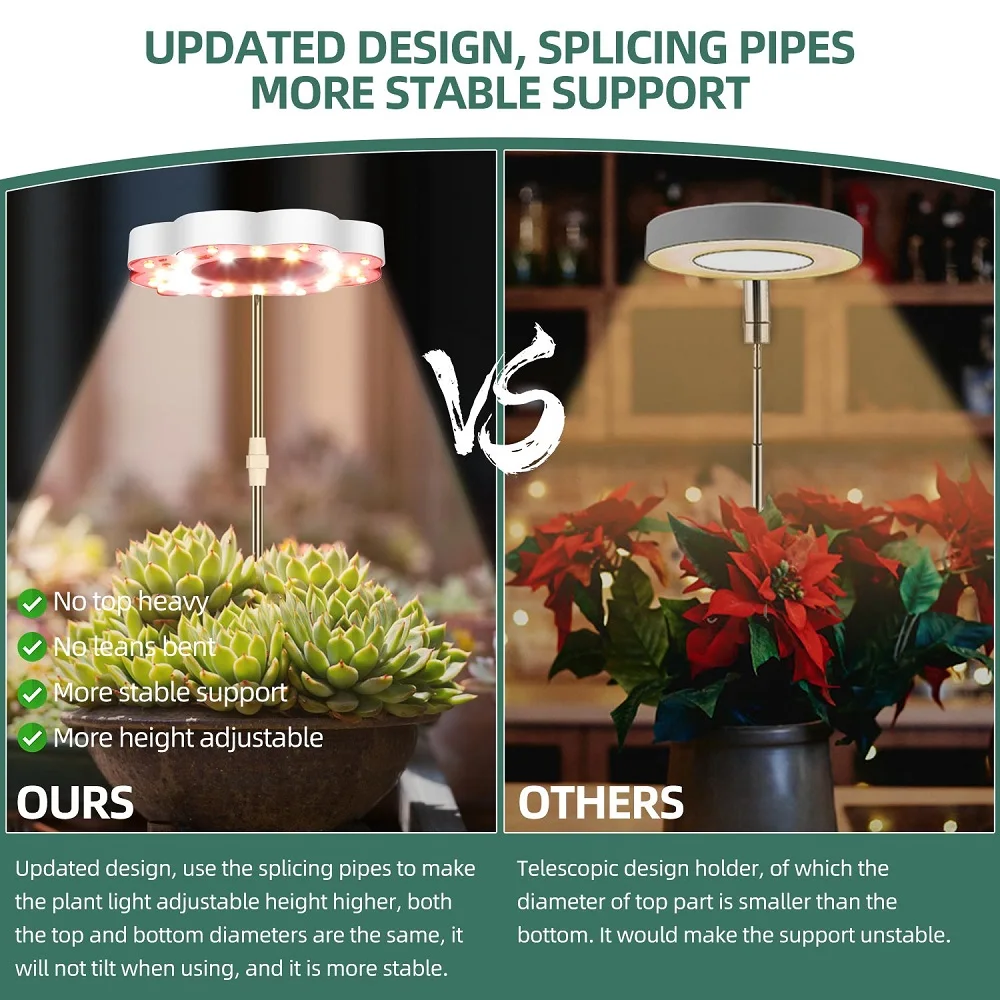 【Не наклоняется и абсолютно безопасенОбновленный дизайн, используйте сплайсинговые трубы, чтобы сделать светильник растения регулируемой высотой выше, как верхний, так и нижний диаметры одинаковые, он не будет наклоняться при использовании, и он более стабильный. Наш мини-светильник для выращивания комнатных растений полный спектр-FCC, ROHS, CE, PSE сертифицирован для защиты вас и ваших детей, лампа имеет длительный срок службы, таким образом, вы можете использовать его с уверенностью и заботиться о своих растениях.