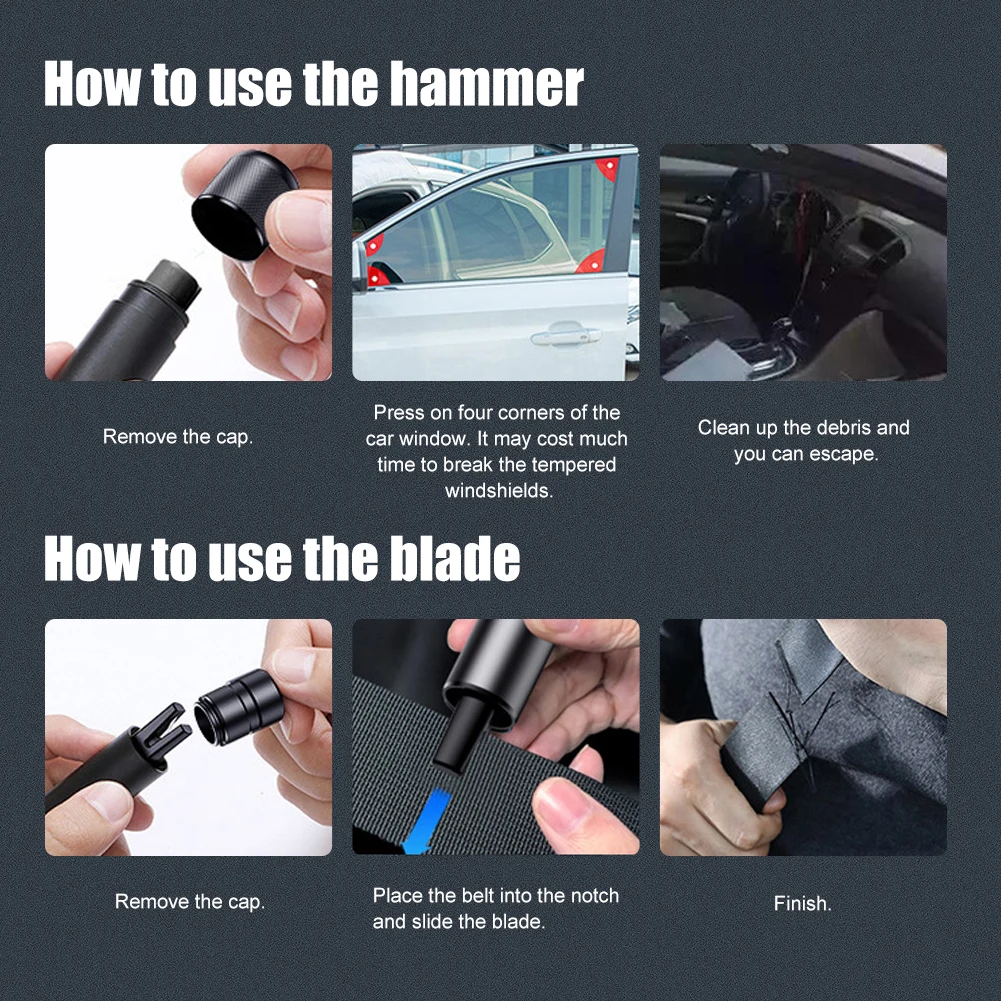 * 2. Специальная конструкция 2-в-1 позволяет безопасности молоток для разбивания окна и сократить ремень безопасности.
