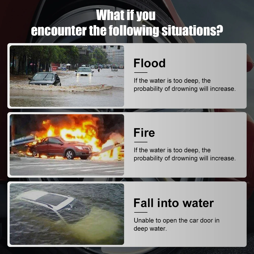* 1. Быстрый выход из боковых окон за одну секунду, специальный молоток безопасности для разбивания окон, только в чехол.