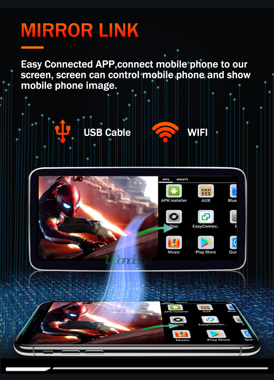 Это радио включает в себя встроенную беспроводную функцию CARPLAYand android AUTO (опционально). Когда вы подключаете свой мобильный телефон к радио через приложение ZIINK, вы можете контролировать свой мобильный телефон с помощью нашего радио-экрана. Вы можете совершать телефонные звонки, слушать мобильный телефон и проверять мобильный телефон на радиоэкране.