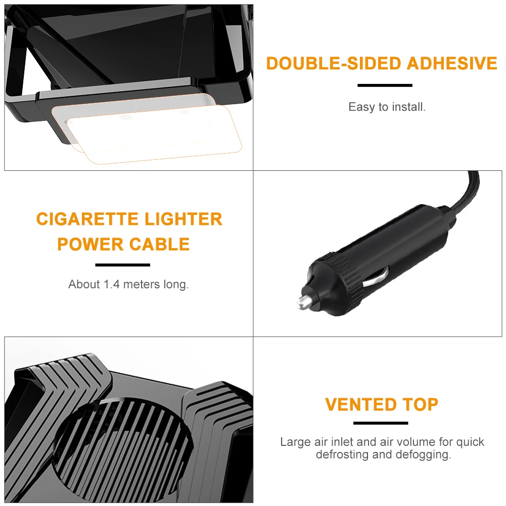 *2. Easy to Use - Just connect the car heater to the vehicle's cigarette socket and switch to heat or fan, easy to install on the dashboard with bottom adhesive.