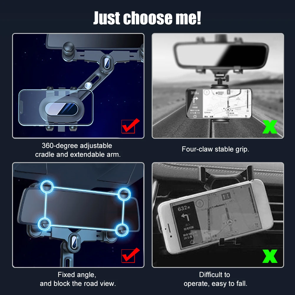 *1. Always keep your eyes on the road and peek the navigation without lowering your head with this rearview mirror phone mount.