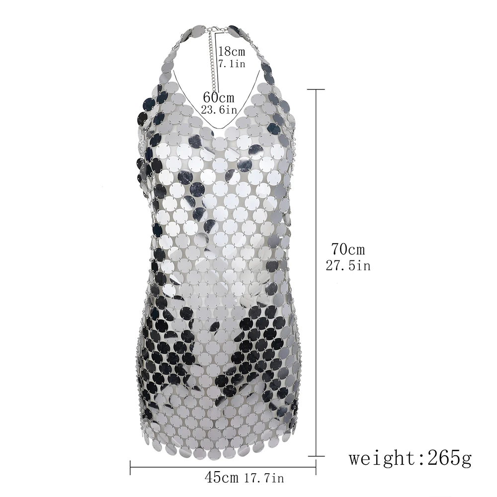 Сверкайте как диско-шар в реальной жизни! Самый Популярный блестящий дизайн, поверх этого урожая, вы будете как Мерцающая звезда. Без рукавов, с лямкой на шее, прочная основа, блестящий укороченный топ, сексуальный металлический жилет с лямкой на шее, регулируемая цепочка, легко заставит вас выглядеть так сексуально и очаровательно, оставайтесь с любимым человеком