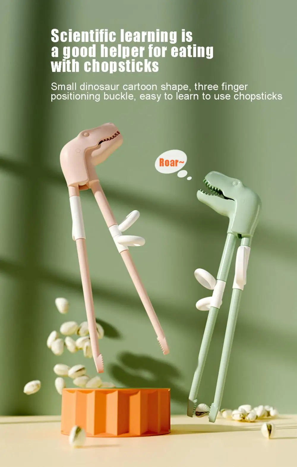 1. [научная палочка для еды]: мультяшная форма маленького динозавра, трехпозиционная Пряжка, легко научиться использовать палочки для еды