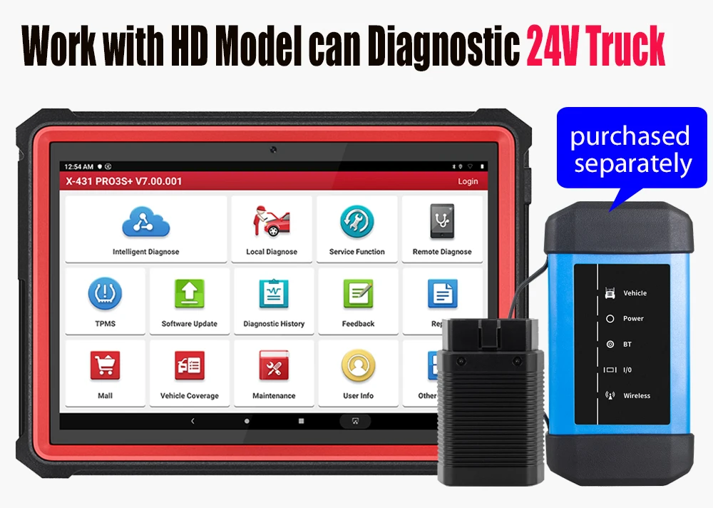 Launch X431 PRO3S + работает с X431 HDIII сверхмощный модуль может протестировать как 12V транспортные средства, так и 24V Грузовики (включая бензин и дизель)