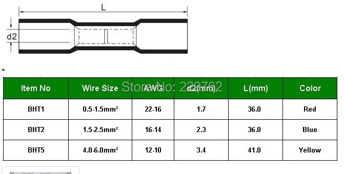 shhworldsea Free Shipping 3X100pcs/lot BHT1/BHT2/BHT5 Heat Shrink Butt Connectors and Splices For 0.5-6.0mm2,22-10 AWG Wire 3 in 1 Terminal