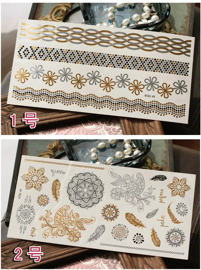 Новинка, боди-арт, поддельные ожерелья, браслеты, Временные татуировки, металлические, серебристые, золотые, водонепроницаемые татуировки, наклейки, водонепроницаемые