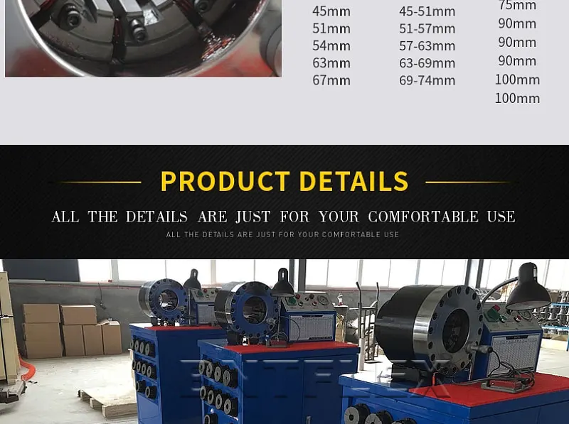 We specialize in manufacturing hose press machine, hose crimping machine fittings, hose skiving machine, pipe cutting machine and try to press and supporting products business,hose crimping machine is a machine for joint withhold withhold fittings assembly equipment for loaders, excavators, truck, dump truck, hammer, ships, tubing assembly on the production and processing equipment, which will be by supporting the contractile force exerted by the metal connector crimping machine dies, will withhold solid metal joints on the supporting rubber hose. Crimping machine is suitable for all types of mechanical high and low pressure hose, pipe, pipe, cable connectors, air conditioning pipes withhold, widely used in vehicles, engineering machinery, welding equipment and other industries. Crimping machine with high precision, high efficiency, and can withhold all forms, and a variety of wire layers caliber elbow, flange, high pressure, large-diameter hose assembly.