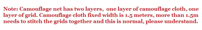 Тип изделия: камуфляжная сетка Материал: ткань Оксфорд Цвет: белый Срок эксплуатации: 2 года на открытом воздухе Срок хранения: 10 лет Доступны цвета: черный, зеленый, джунгли, джунгли, цифровой, пустынный, синий и белый. Применение: 1. Военное оборудование и проекты и т. Д. 2. Военные тематические бары, украшения военного магазина и военные энтузиасты. 3. Рестораны, парки, украшение дома, 4. Реквизит военной пленки и фоновые установки сцены 5. Наблюдение за птицами, охота 6. Пейнтбольные игры, Снайпер