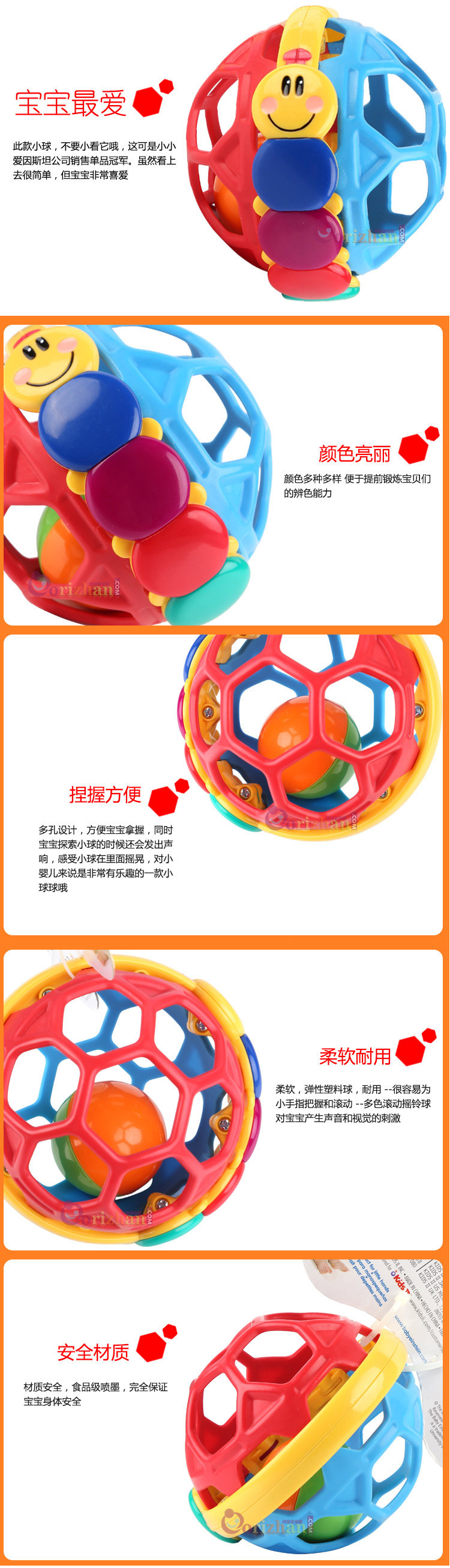 Новое поступление детские пластиковые игрушки красочные гусеницы динь-Донг Белл baby Бенди мяч 1 шт