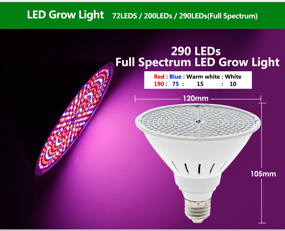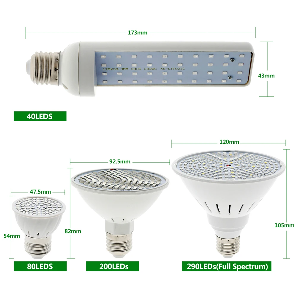 Полный спектр света роста E27 220V LED лампа для выращивания 80 светодиодов 200 светодиодов 290 светодиодов фитолампа для комнатных растений цветы растут палатки