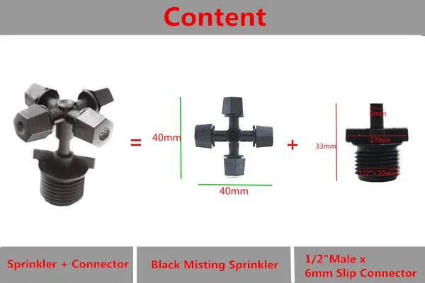 Быстрая доставка 50 шт Черный Крест запотевание разбрызгиватель с 1/2 "винтовой воды орошения садоводства Вращающийся Крест распыления газон Спрей оборудование
