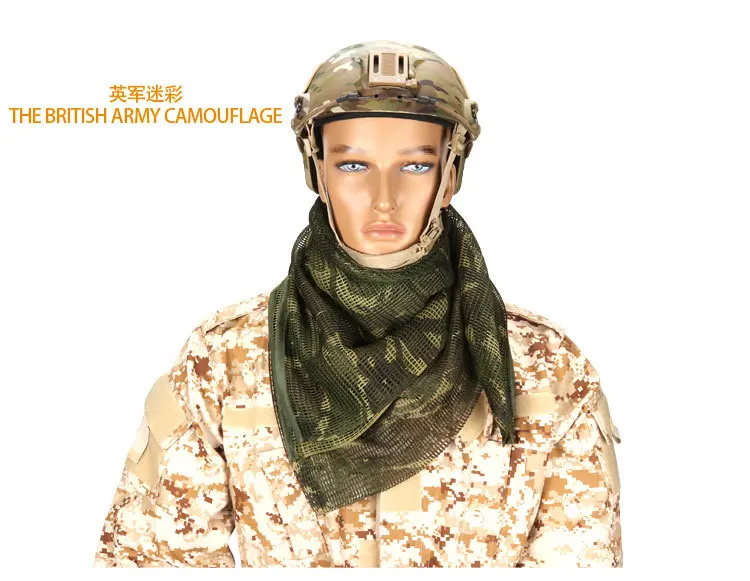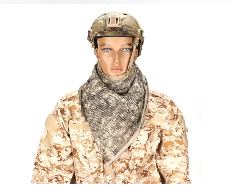 Этот сетчатый шарф используется в любую погоду, широко используется в камуфляжной расцветке, защищает себя от выдувания песка на открытом воздухе или в Тактической деятельности.