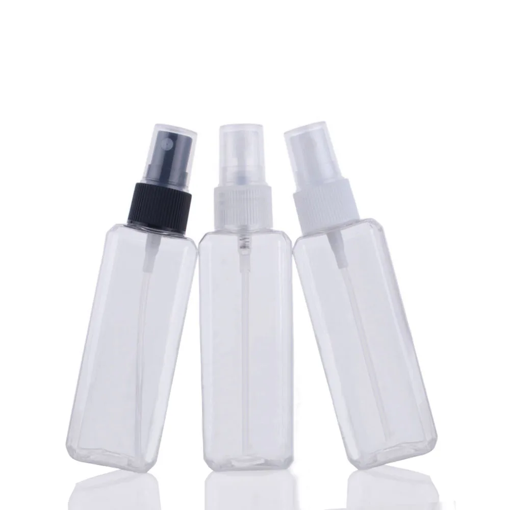 50 шт./лот Бесплатная доставка 100 мл прозрачный синий перегонный пластиковый спрей для духов квадратные бутылки пустой косметический контейнер оптовая продажа