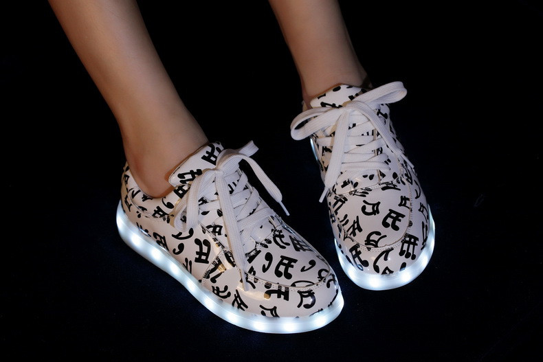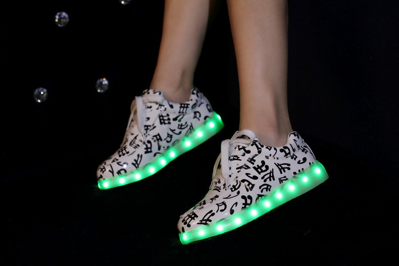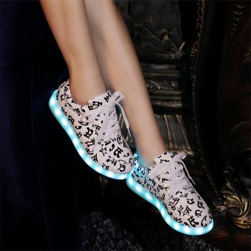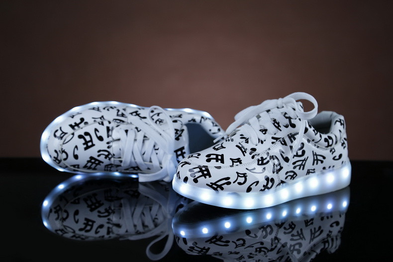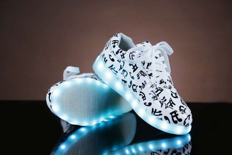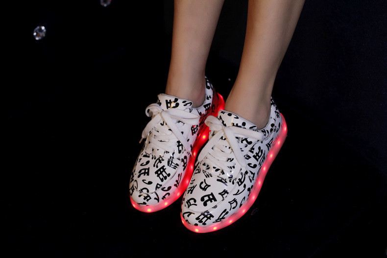 Новые модные туфли на плоской подошве 7 цветов со светодиодсветильник кой туфли унисекс с usb-зарядкой флуоресцентные светящиеся туфли с музыкальными нотами Размеры 35-46