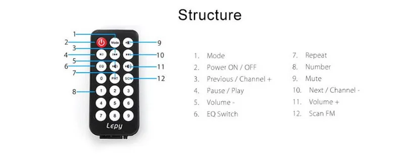 Посылка:1 x усилитель Bluetooth Lepy LP - 269S, 1 x Кабель FM, 1 x пульт дистанционного управления, 1 x Er