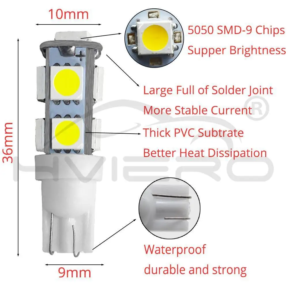 4 шт. T10 9SMD 5050 автомобильный 12v светодиодный