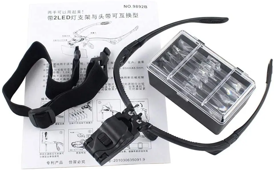 Этот инновационный Лупа-козырек для глаз с кронштейном, повязкой на голову и светодиодный козырьком можно легко использовать для чтения книг, чтения газет, рисования, рукоделия, пошива, просмотра цветов и растений, горшечного ландшафта и так далее. Кронштейн и повязка на голову взаимозаменяемы. Более того, доступны пять видов линз с различными увеличениями для вашего альтернативного использования.